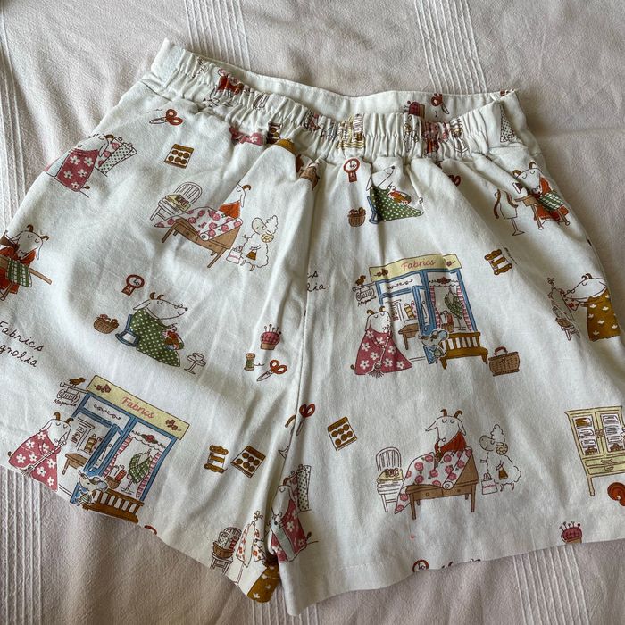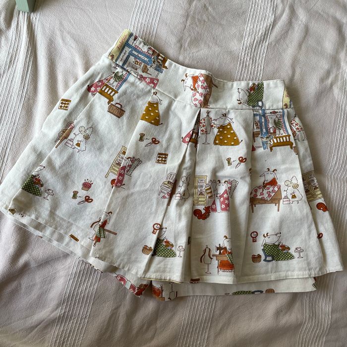 Jupe Short en TBE fermeture invisible sur le côté, élastique a la ceinture de derrière , motif mouton rigolot.
