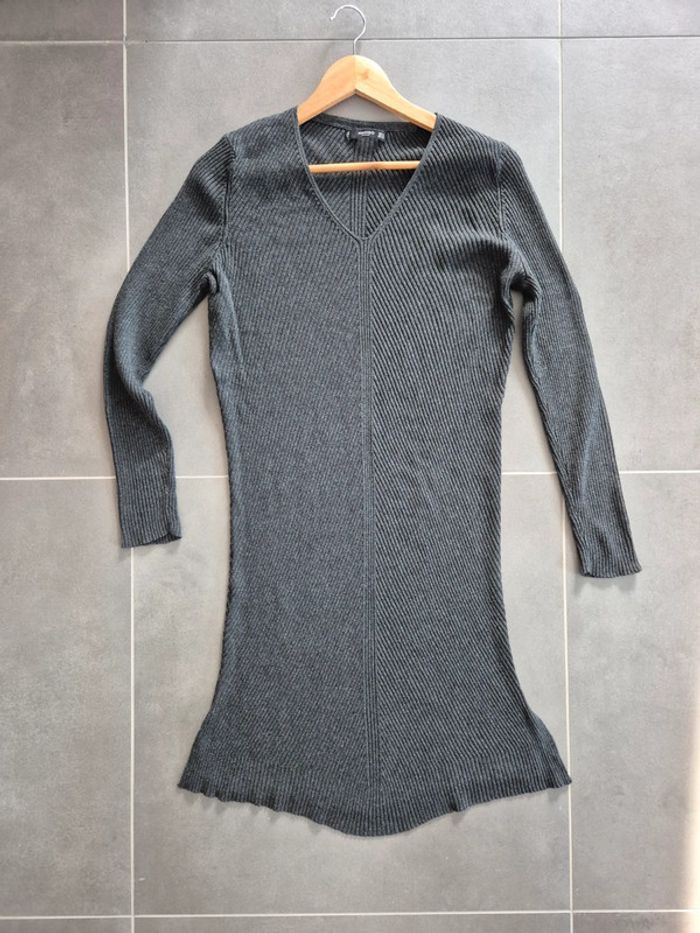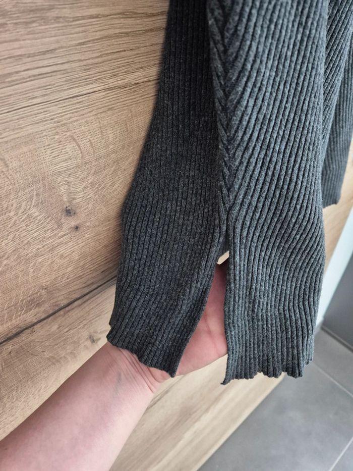 Robe pull manches longues grise anthracite Col V , pull cotelé, fente de chaque coté sur le bas de la robe. Peut convenir à un 36/38 #taille36marion2694 #mango #cotelé #robe #pull