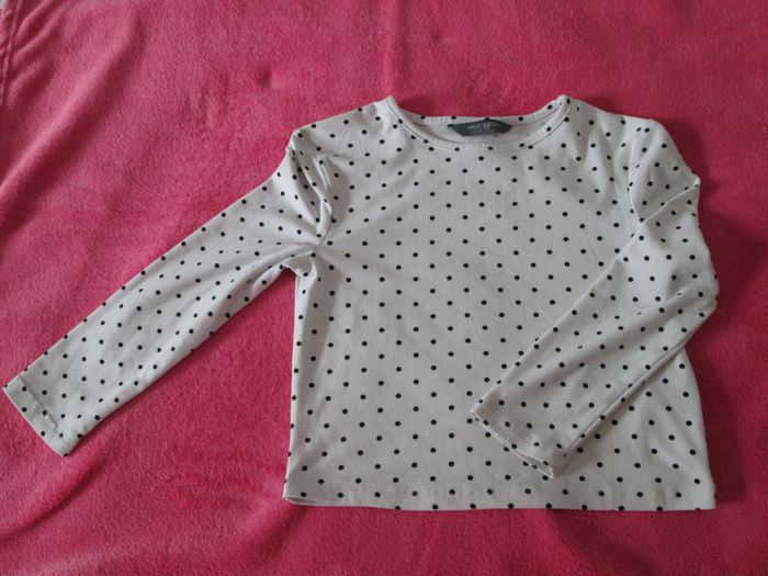Vends tee-shirt blanc à petits pois marine. Manches longues. Taille 5 ans. Comme neuf. N'hésitez pas à consulter mes autres annonces.