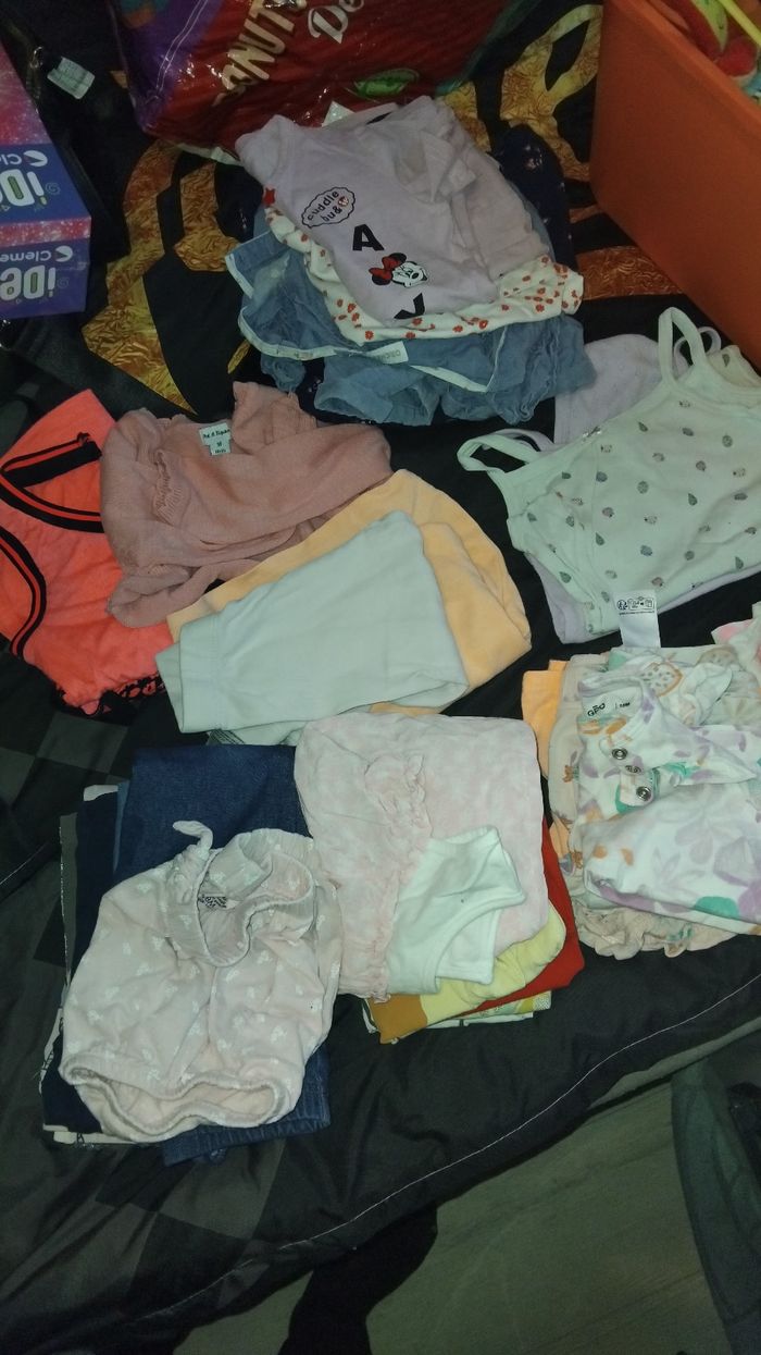 Lots 18 mois été 5 leggings 1 pyjama manche longue 2 pièces 3 pyjamas été 2 pièces 1 short 5 tee shirts 2 body bretelles 2 robes 1 combi 1 robe manche longue 1 gilet court Soit 26 pièces