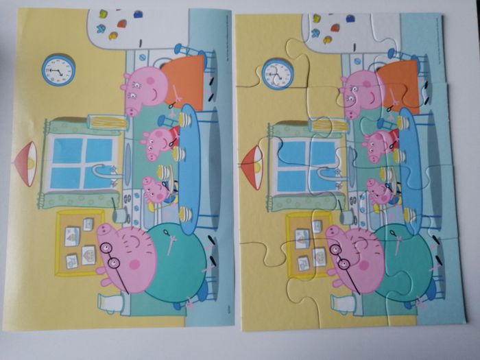 puzzle peppa pig 2 x 12 pièces avec modèle ravensburger à noter que le dos des feuilles de modèles est crayonné - dernière photo à partir de 3 ans