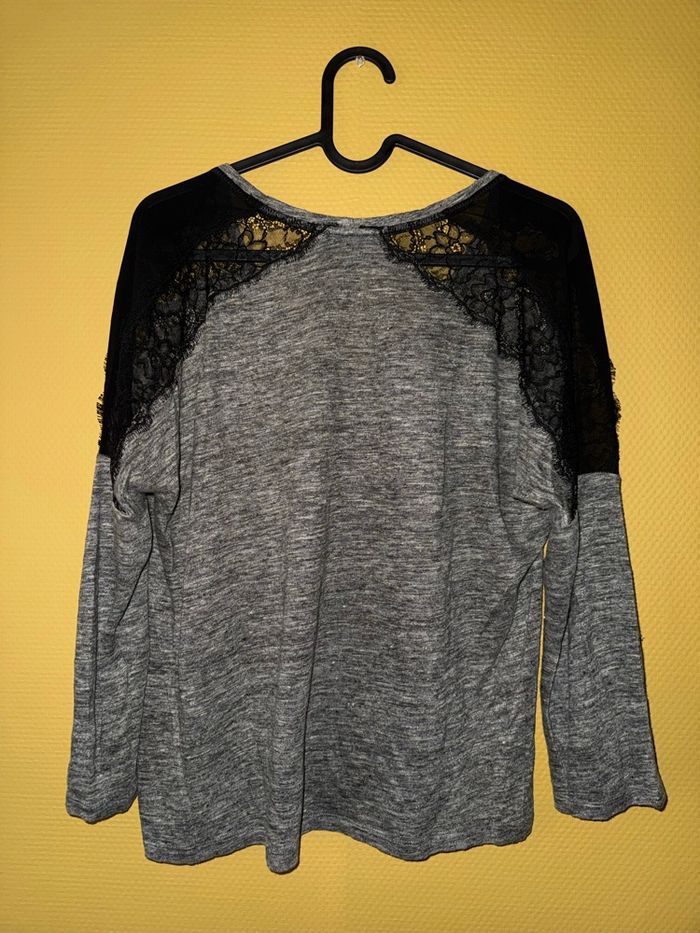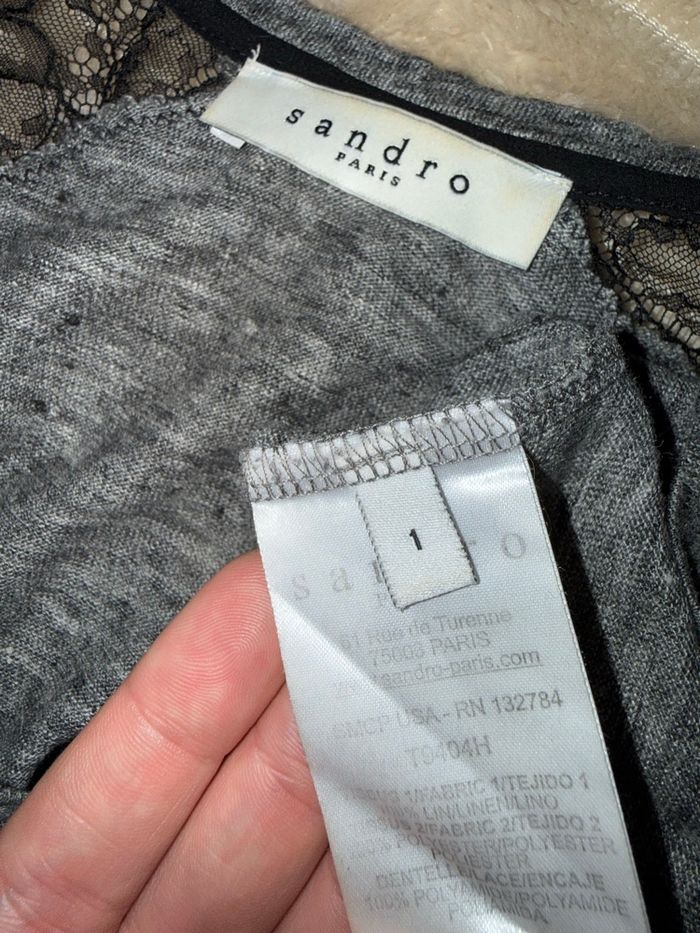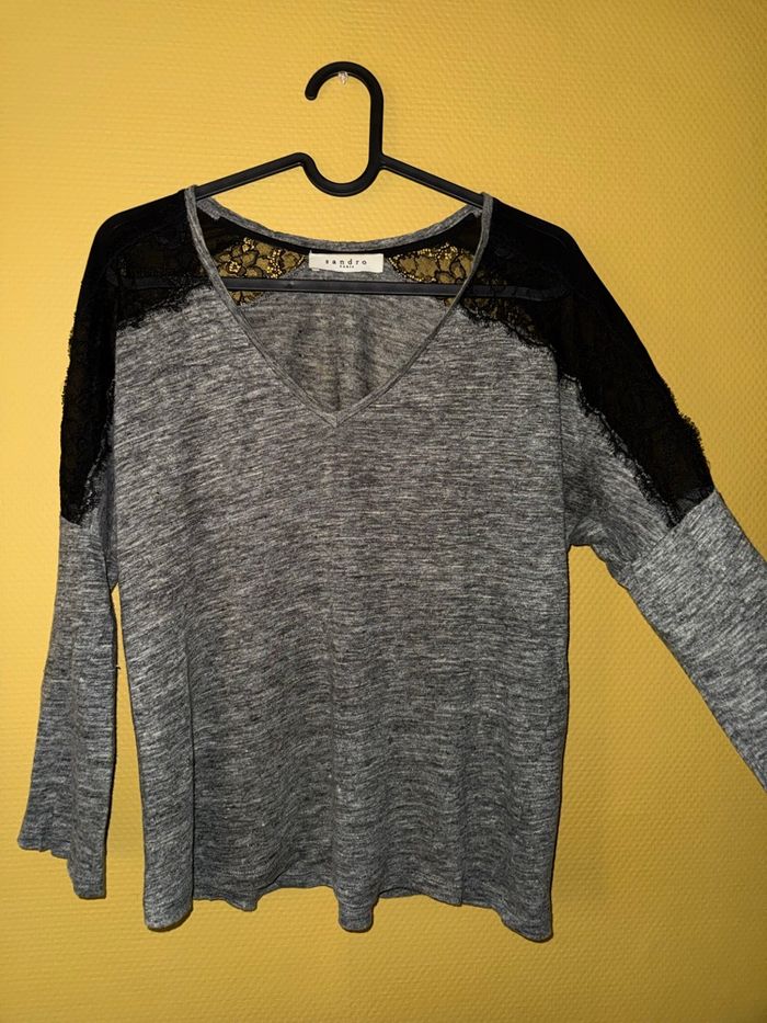 T-shirt Sandro / détaille dentelle / noir-gris Taille 1 ( S ) Très bon état , aucun défaut