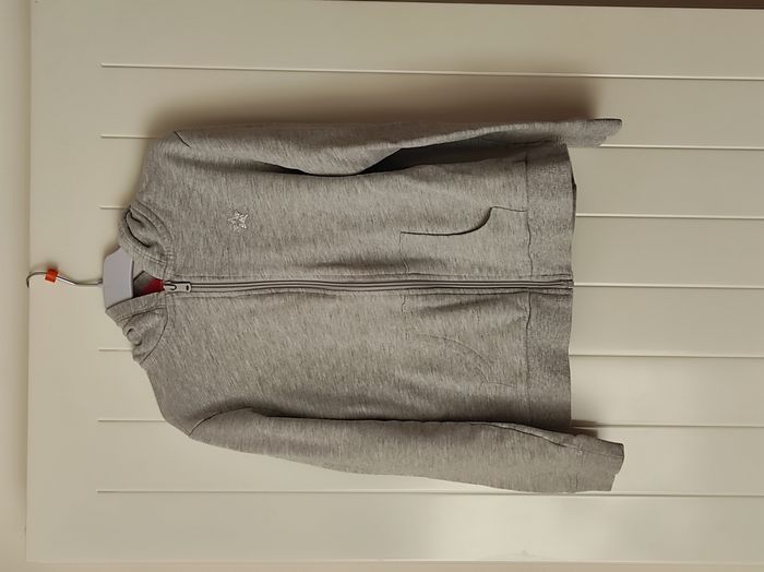 ⭐ Veste à capuche zippée fille – 8 ans (étiquette 10 ans) – Gris et corail - photo numéro 1