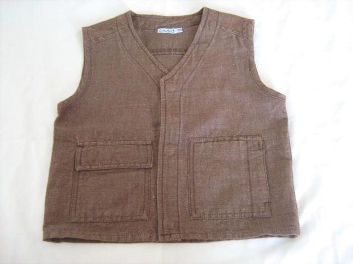 Vends gilet sans manches Okaïdi marron. Boutons-pression sur le devant. 55 % lin et 45 % coton. Taille 6 ans. N'hésitez pas à consulter mes autres annonces.