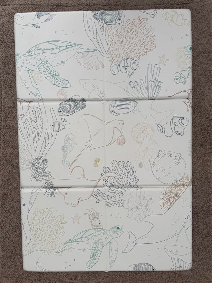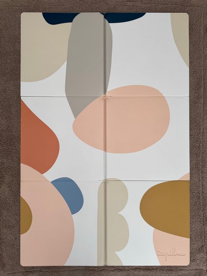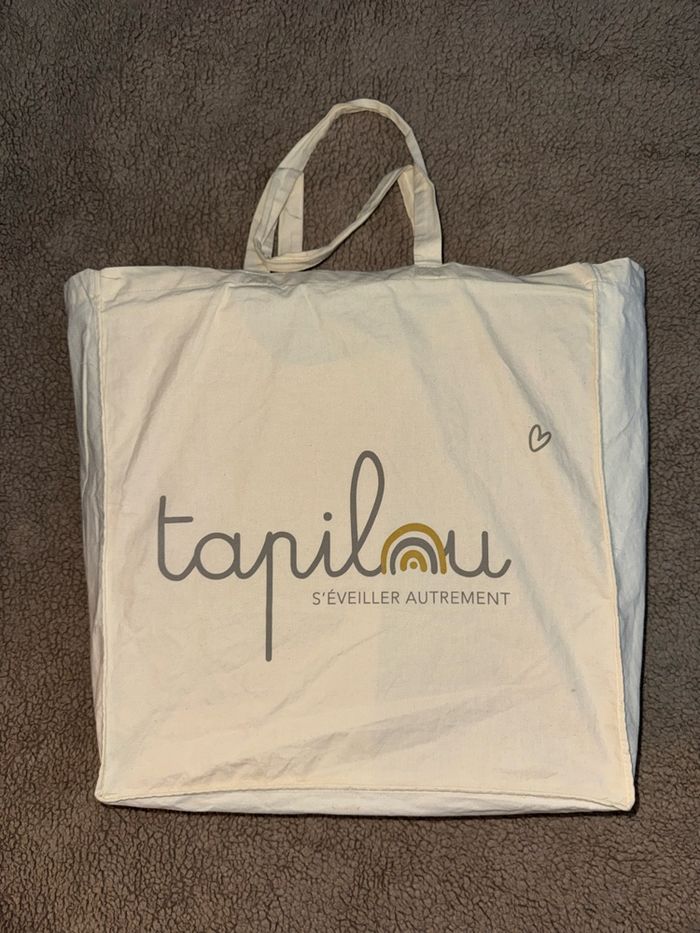tapis d’éveil pliable transportable dans son tot bag réversible oeko tex quelques micros taches qui ne gêne en rien son utilisation (voir photos) à servi mais reste en très bon état conforme aux photos valeur neuf 139€