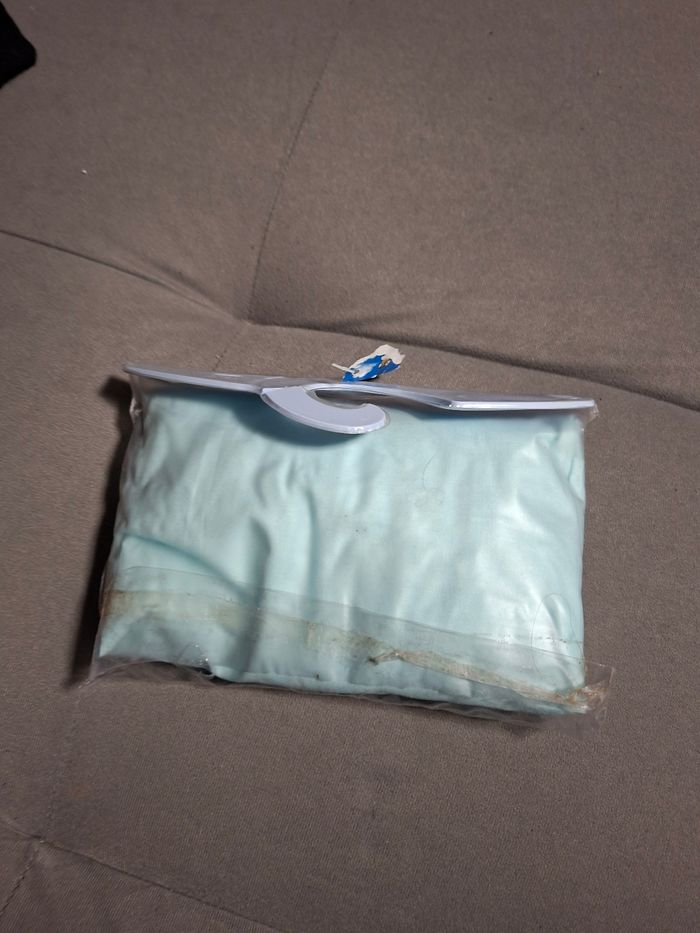 Neuf, jamais servi, juste ouvert pour m'assurer qu'il s'agissait bien d'un drap housse. Pour lit bébé