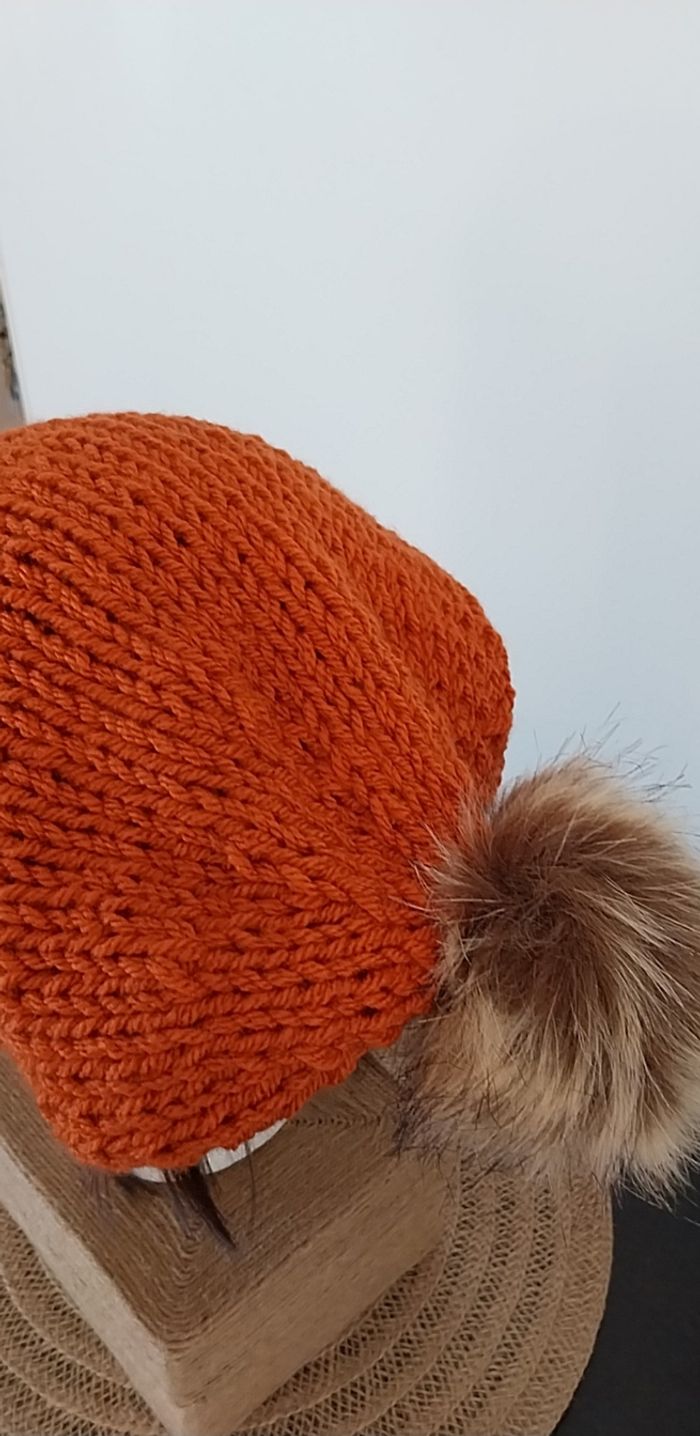 Je vends ce joli bonnet en acrylique de couleur orange foncé coileir de l'automne et son pompon. - Type de produit : Bonnet - Univers : Femme - Matière : Acrylique et polyester - Couleur : Orange foncé - Détails : Pompon amovible en fausse fourrure. Bonnet large et retombant. OK taille 52 à 58 cm. État neuf sans étiquette N'hésitez pas à me contacter pour plus d'informations !