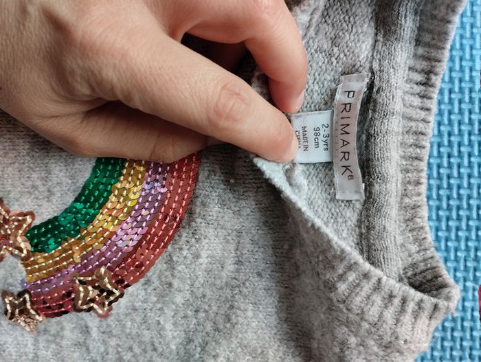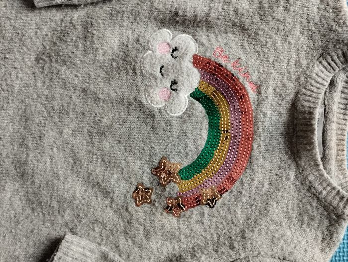 Robe pull, motif arc en ciel en sequins. Primark. Taille 2-3 ans, 98 cm. Très bon état.