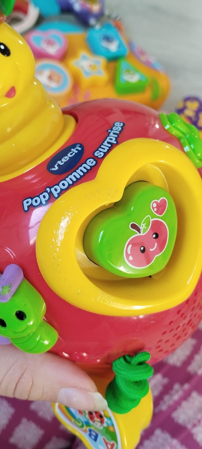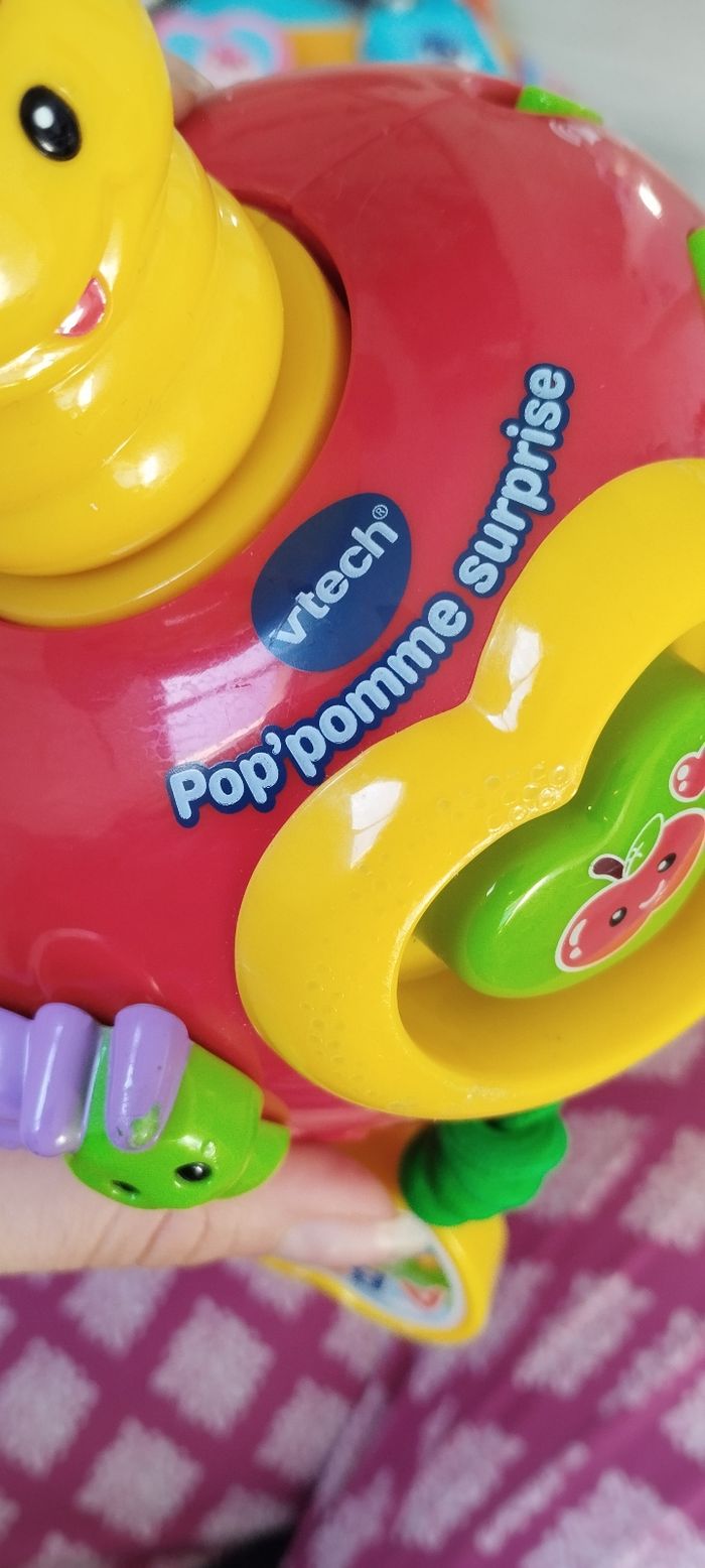 Bonjour, Je vends ce jouet pop'pomme de la marque VTech en bon état, il y a un défaut au niveau du devant voir photo
