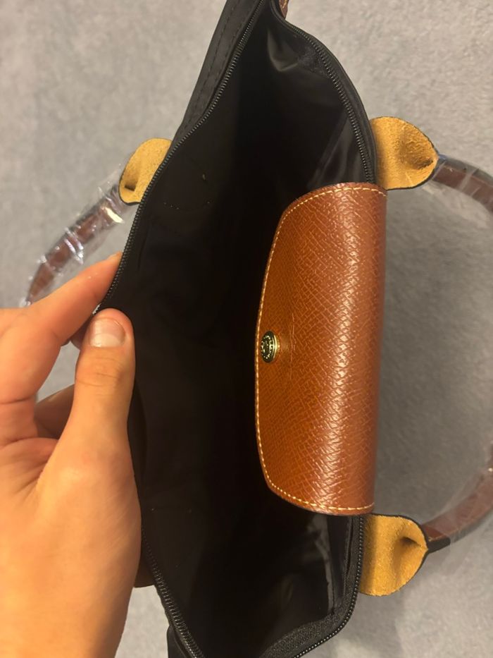 Sac à main longchamp classique noir et marron taille M - photo numéro 10