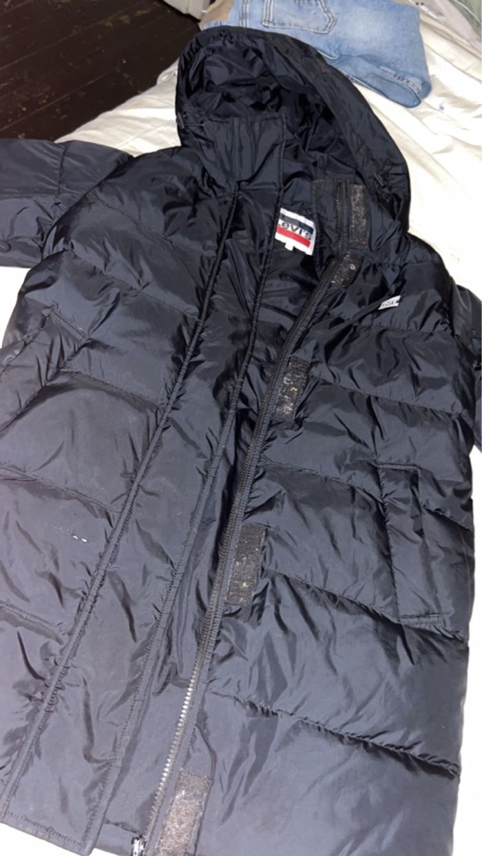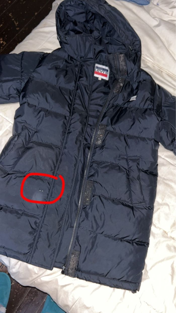 Doudoune Lévis taille xs ( peut tailler pour un S également ) Longue doudoune tiens chaud Petit défaut ( légèrement arracher mais ne se voie pas une fois porter )