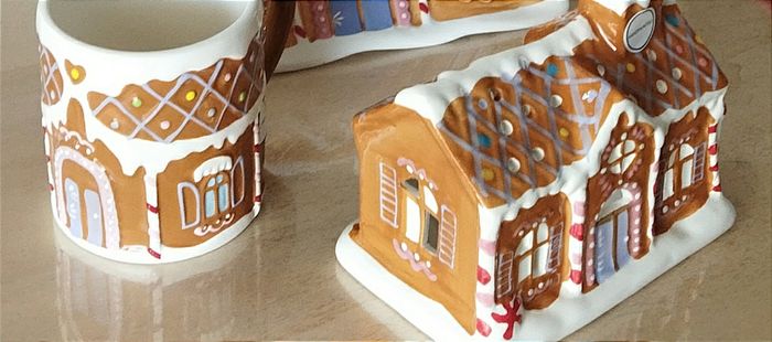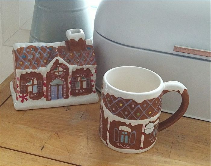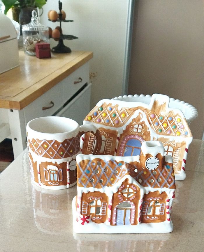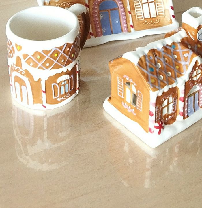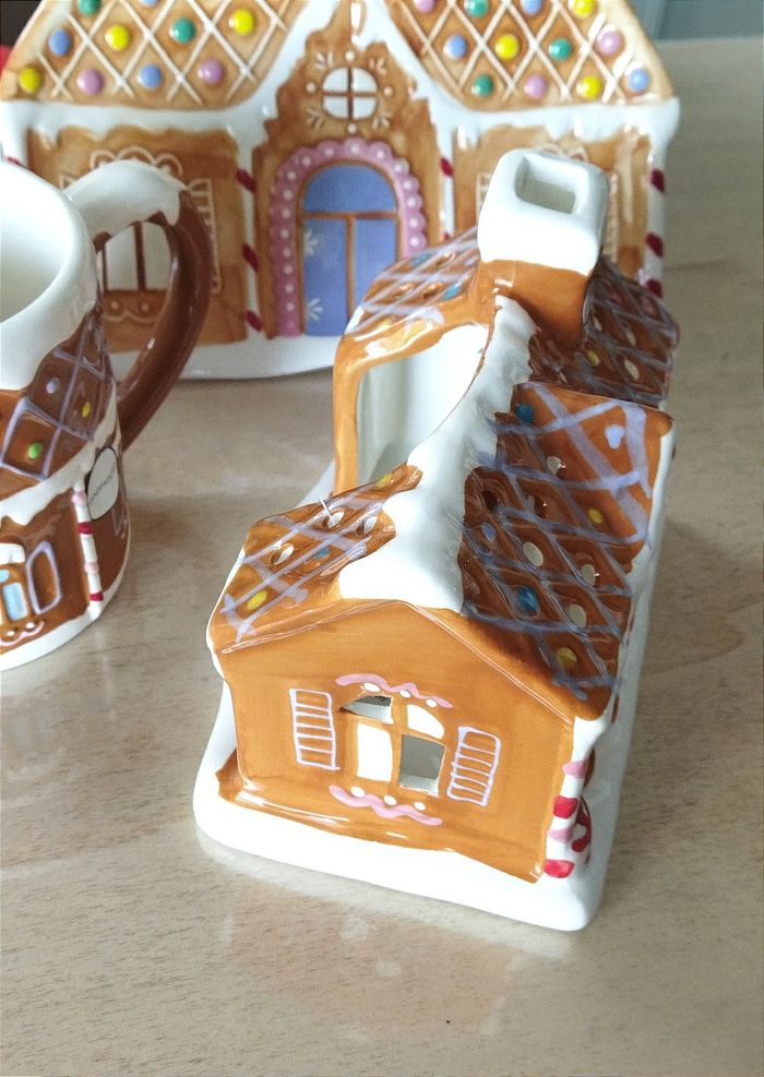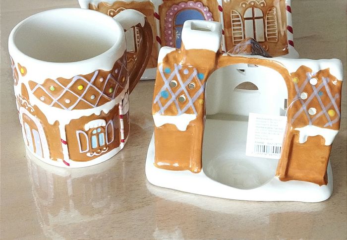 Ensemble de deux articles : maison photophore + tasses. Neuf avec étiquette
