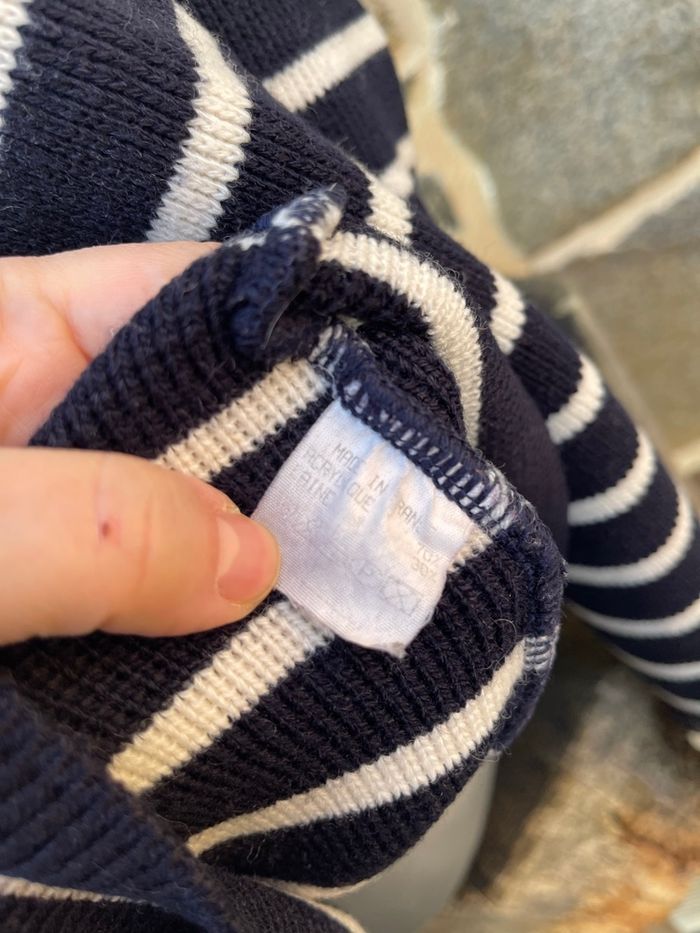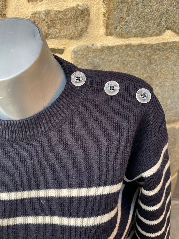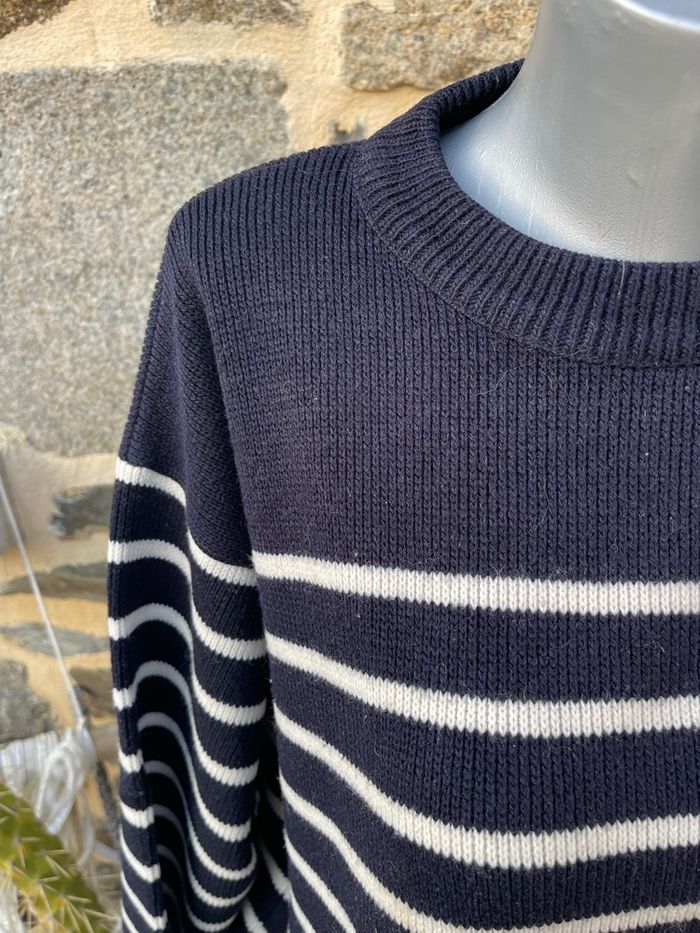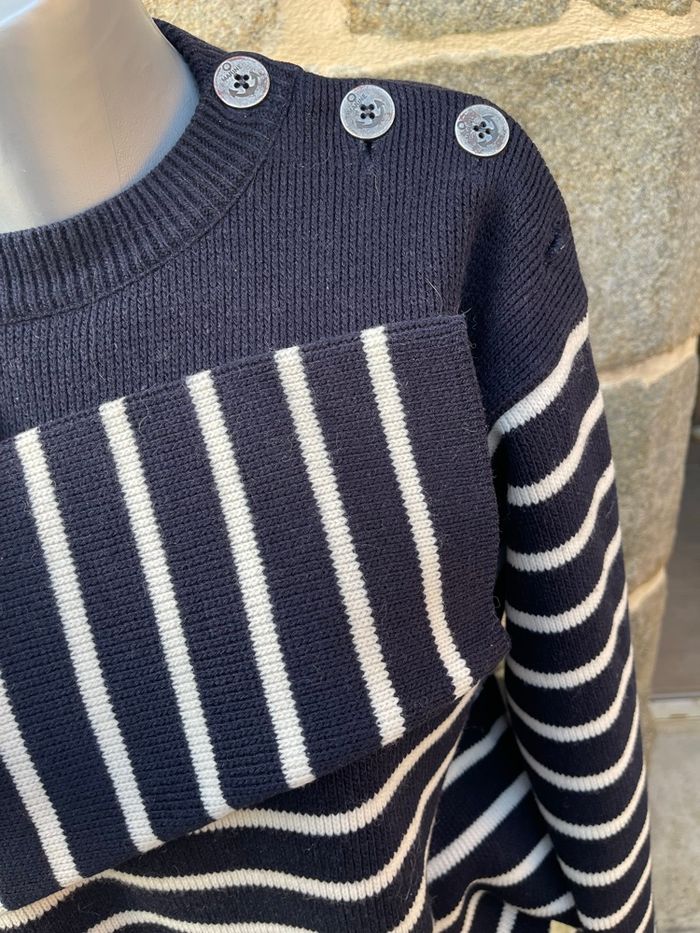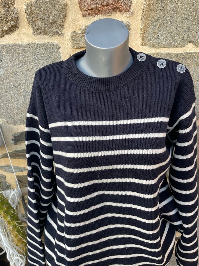 Pull style marin / marinière coupe large bleu marine à rayure blanc Taille XL Coton Mixte Bouton sur l’épaule