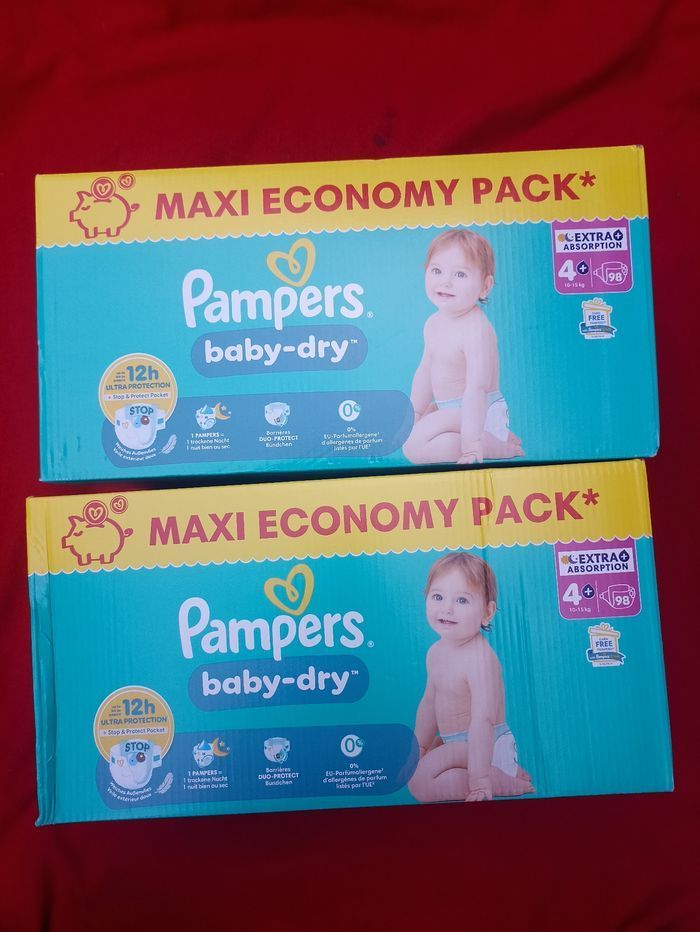 2 cartons de couches Pampers baby-dry T4+ taille 4+ jamais ouvert
