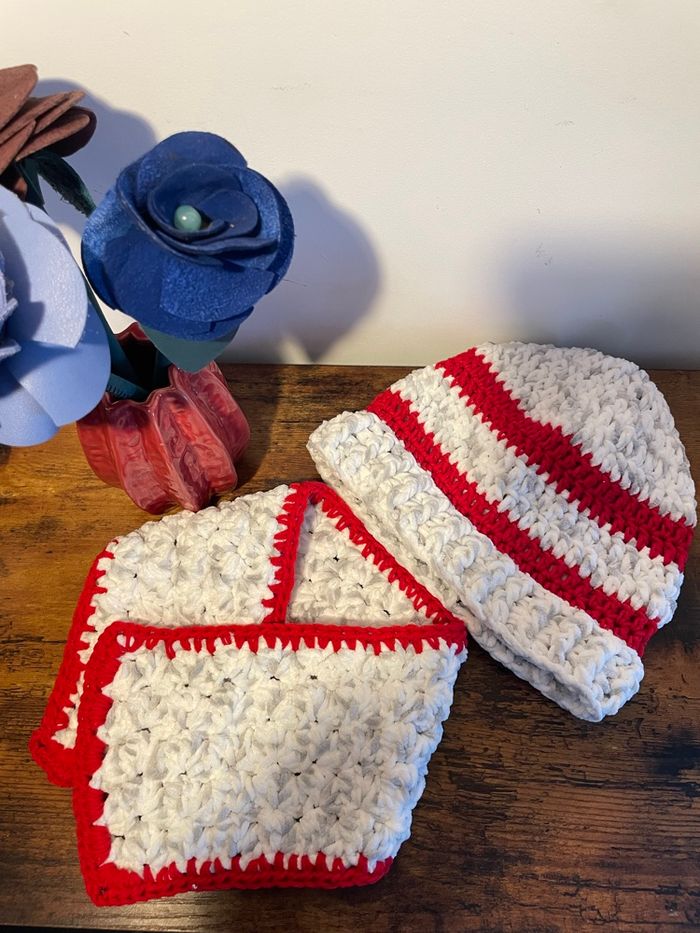 Ensemble bonnet/écharpe pour enfant au couleur de l’hiver et Noël 🎄 Taille : 1-2 ans