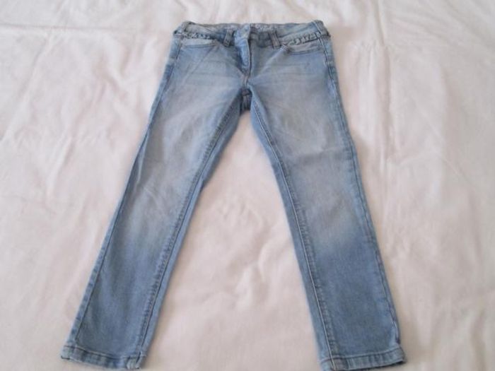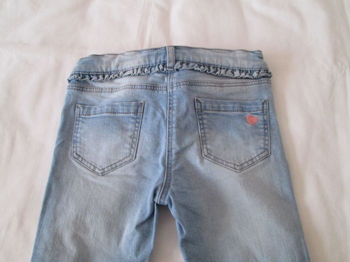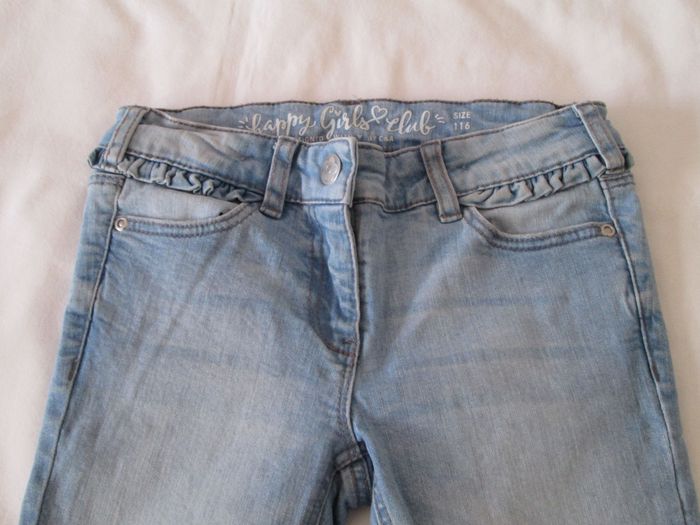 Vends jean clair Happy Girl. Petit volant sous la taille. Petit cœur brodé sur une poche arrière. 99 % coton + 1 % élasthanne. Taille 6 ans. Neuf, jamais porté. N'hésitez pas à consulter mes autre annonces.