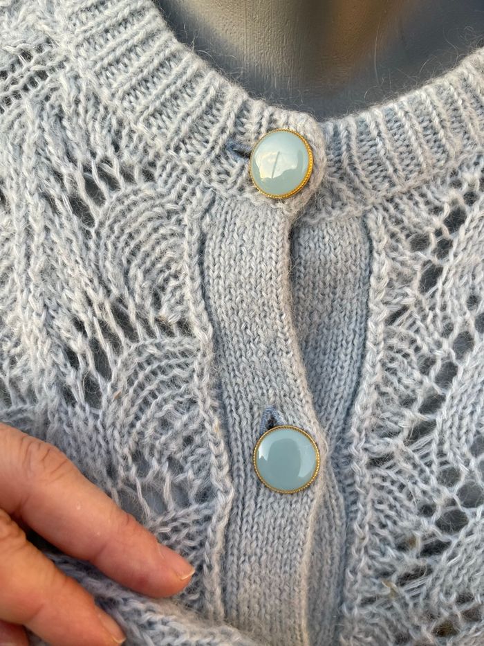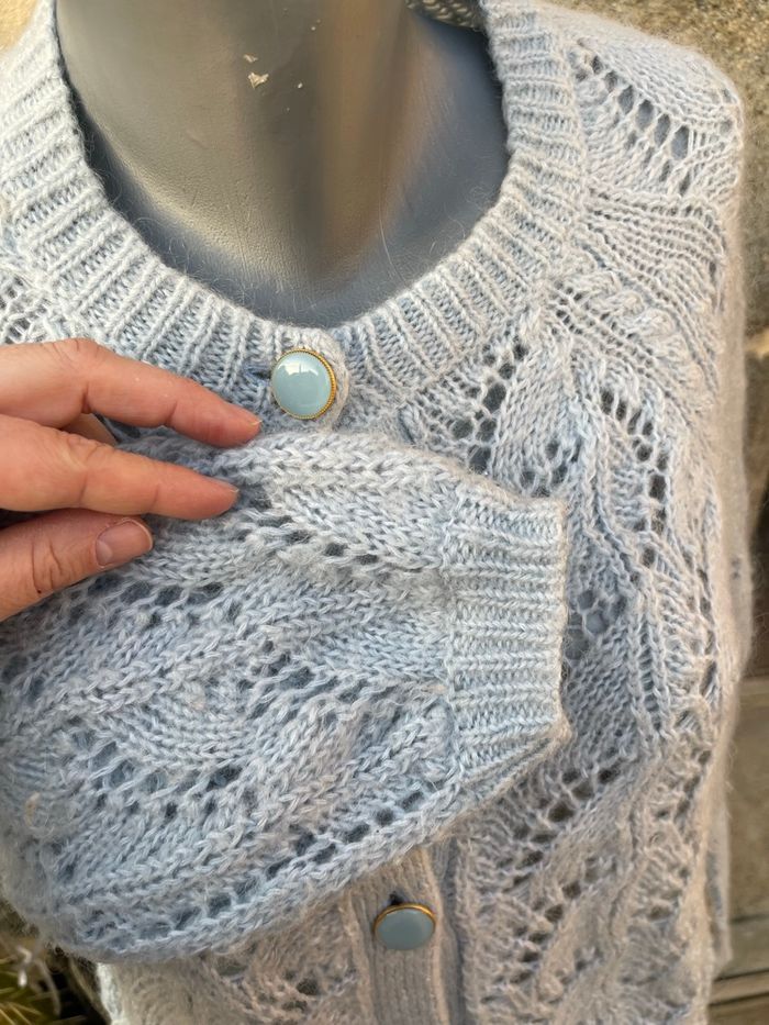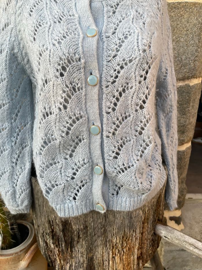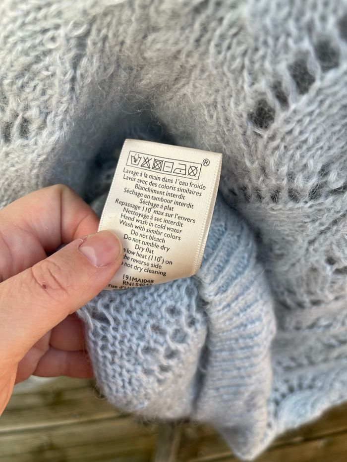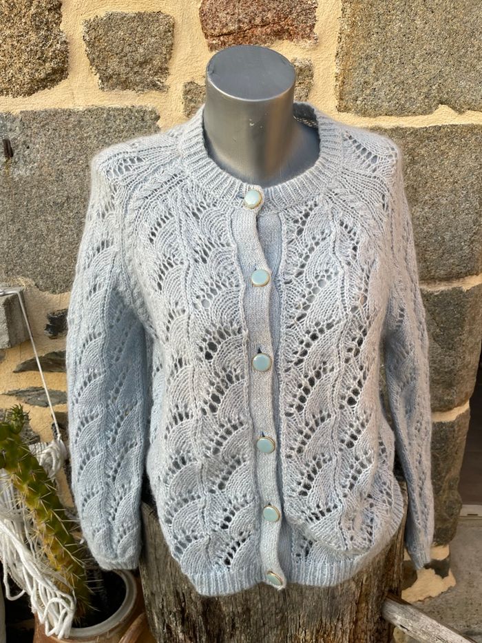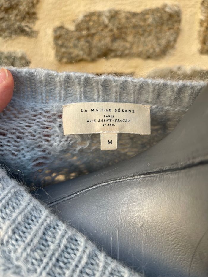 Cardigan en laine mohair bleu avec bouton doré et bleu ciel Très bonne état Taille M Sezane