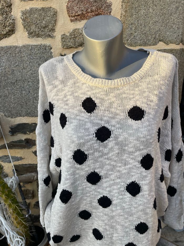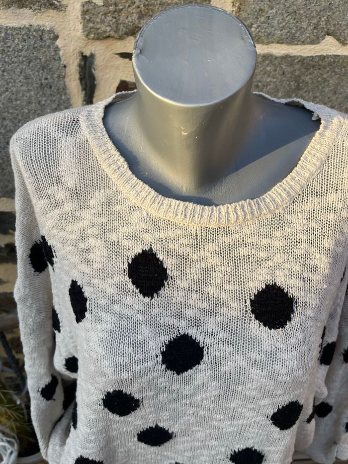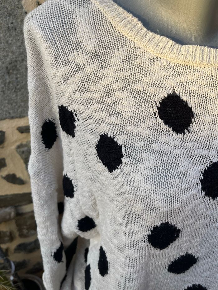 Pull en maille crème à pois noir - Zara  - photo numéro 3
