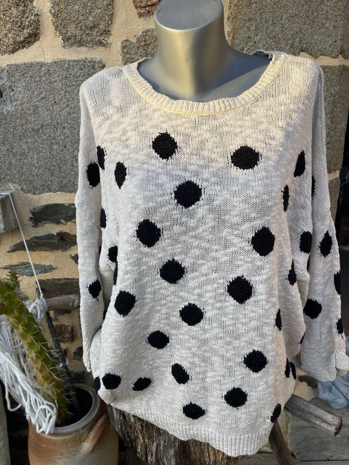 Pull en maille crème à pois noir - Zara  - photo numéro 1