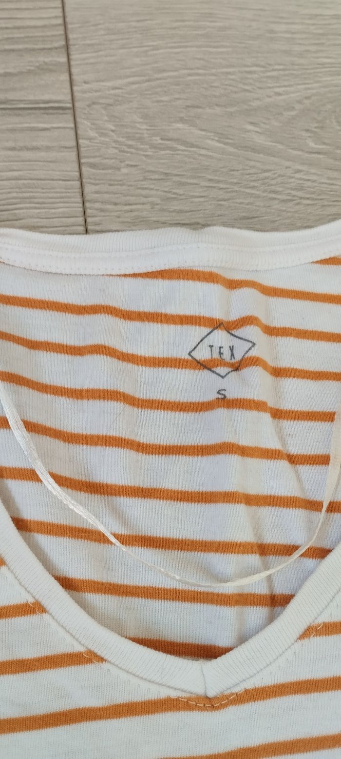 Bonjour, Je vends ce t-shirt MC pour femme en taille S de la marque Tex en très bon état