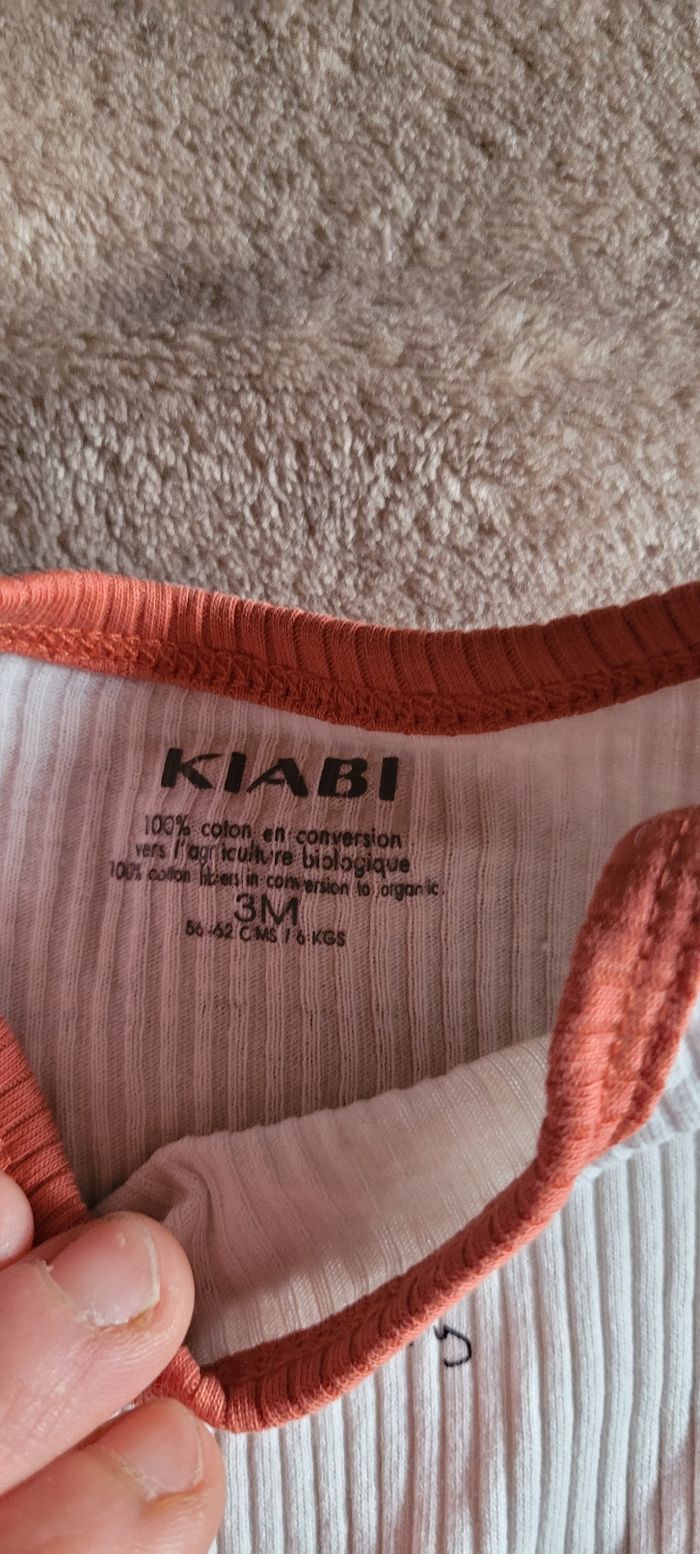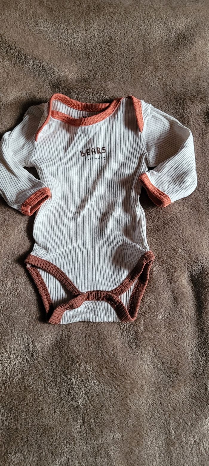 Body manches longues Beige et rouille Notifié 3 mois mais Taille 1 mois ( passé en machine à plus de 60 ° ) Kiabi