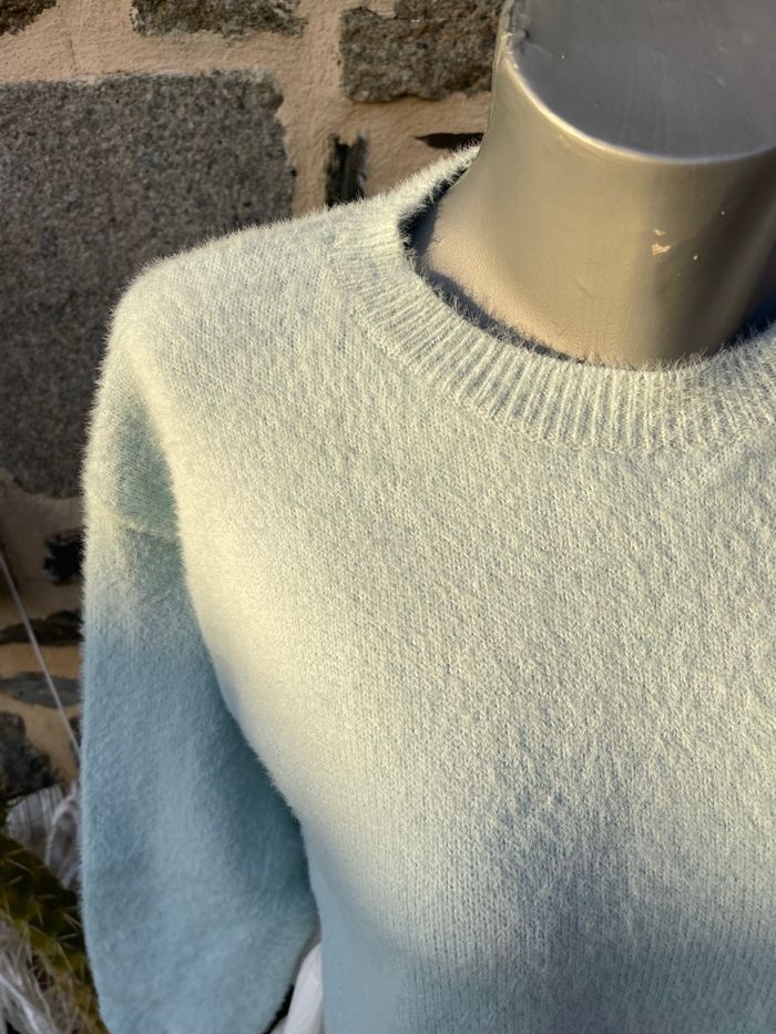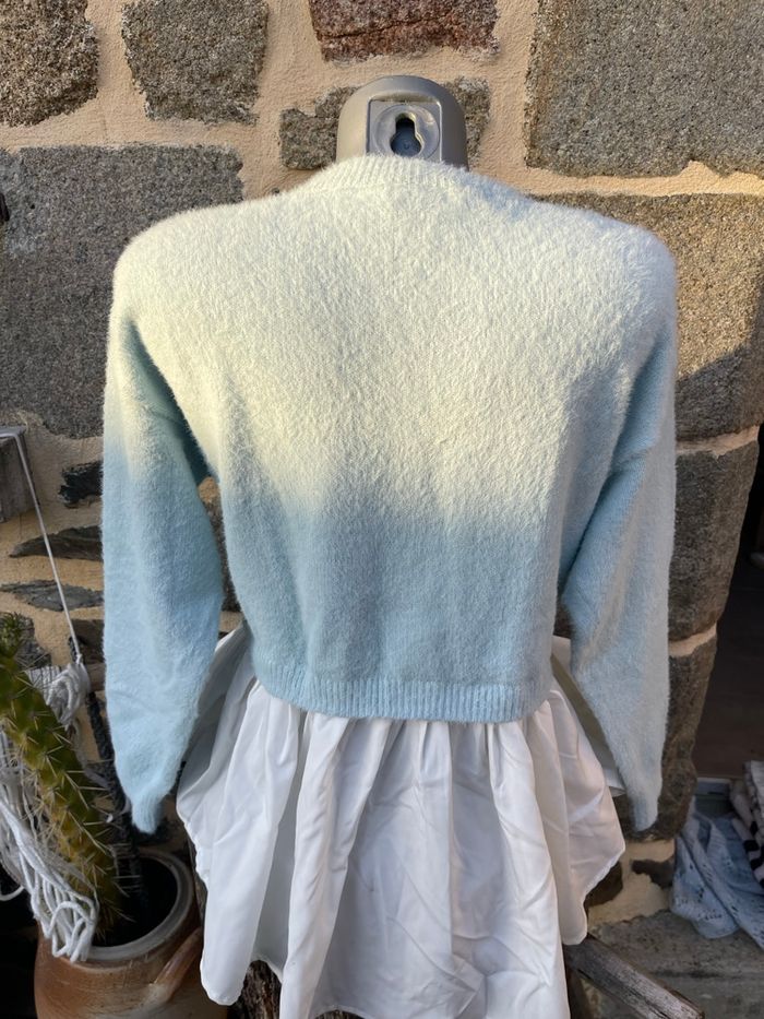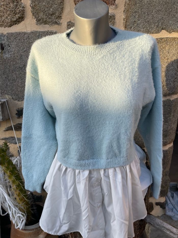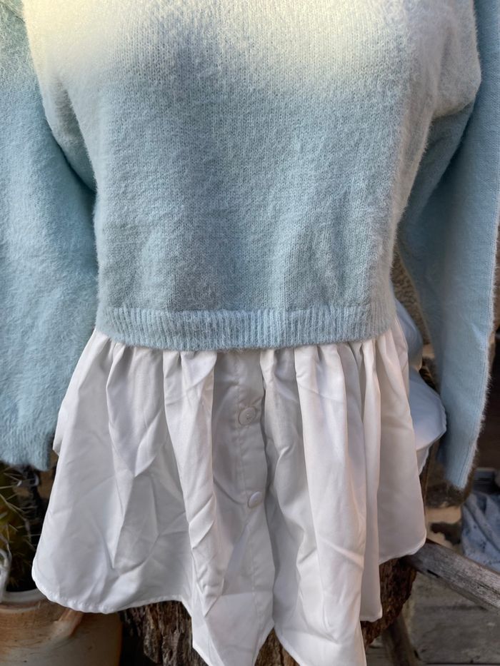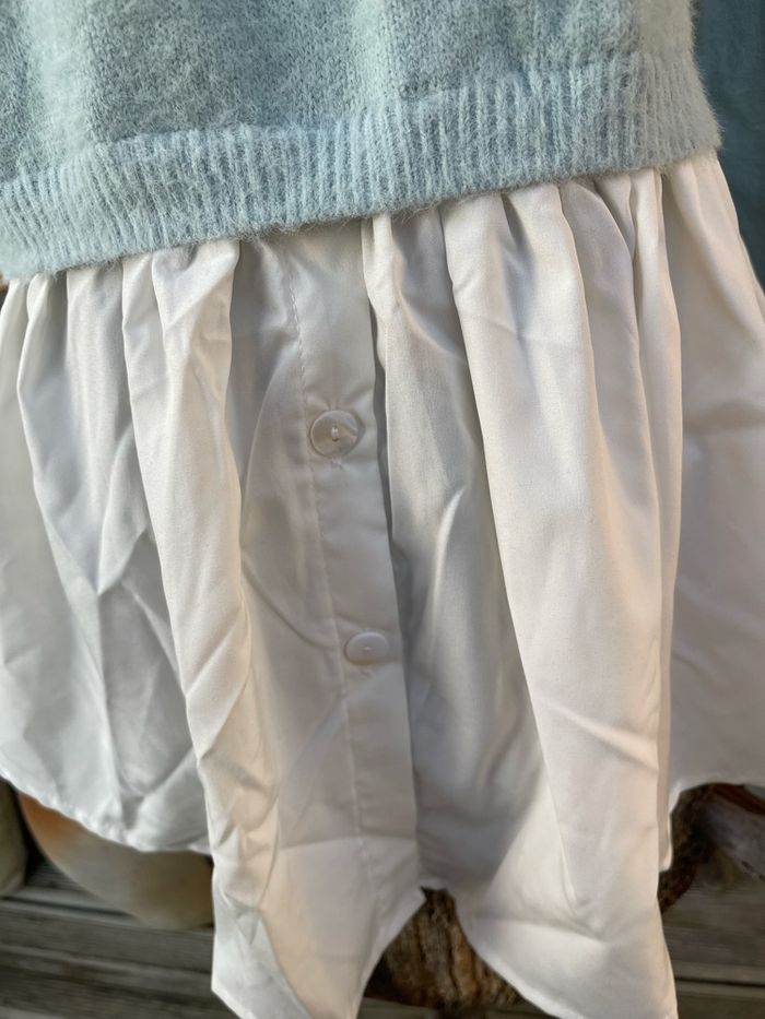 Pull en laine d’alpaga bleu ciel avec chemisier intégrée blanc Taille unique Kilky - Boutique indépendante