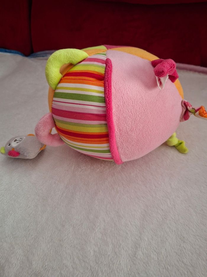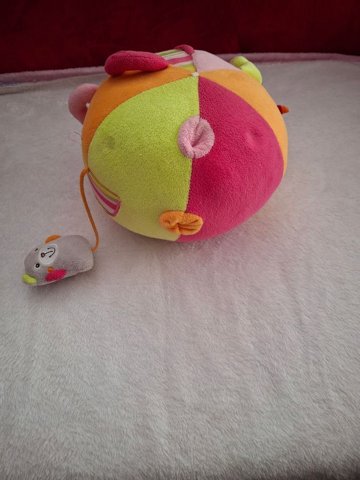 Je vends cette balle d'éveil multicolore et interactive. - Type de produit : Jouet d'éveil - Couleurs : Rose, jaune, orange - Fonctionnalités : Sonore, avec petite souris amovible Très bon état. Idéal pour les tout-petits ! N'hésitez pas à me contacter pour plus d'informations.