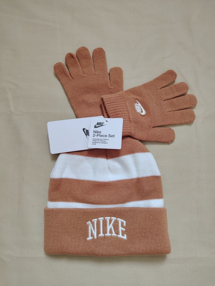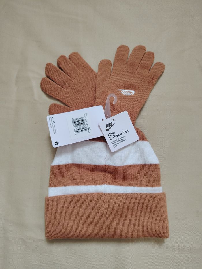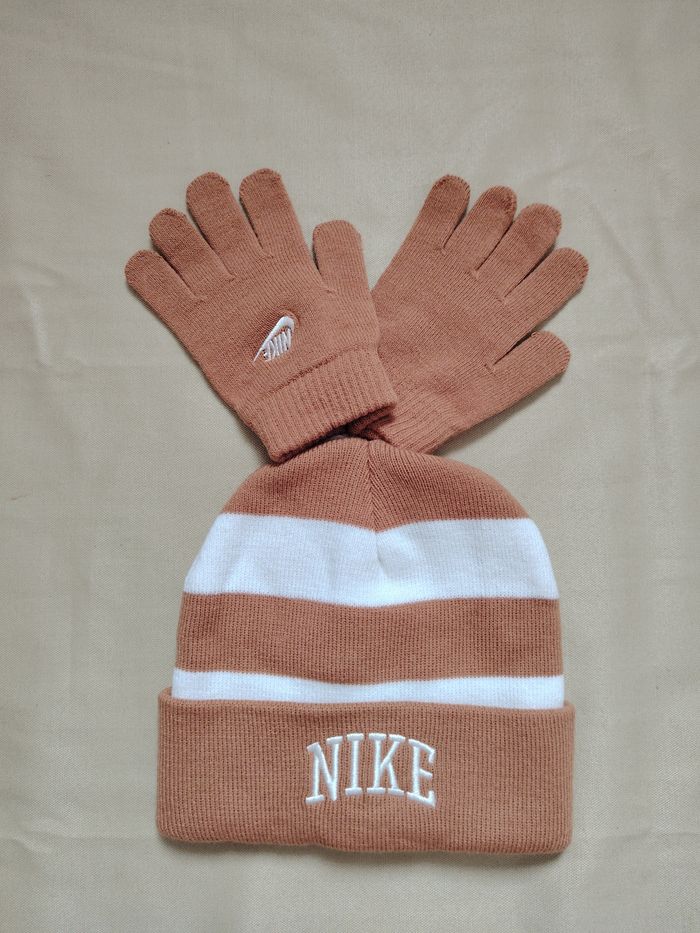 Ensemble Nike Neuf - Bonnet à rayures et Gants - Marron / Flax - photo numéro 1
