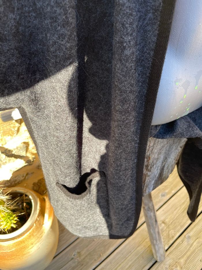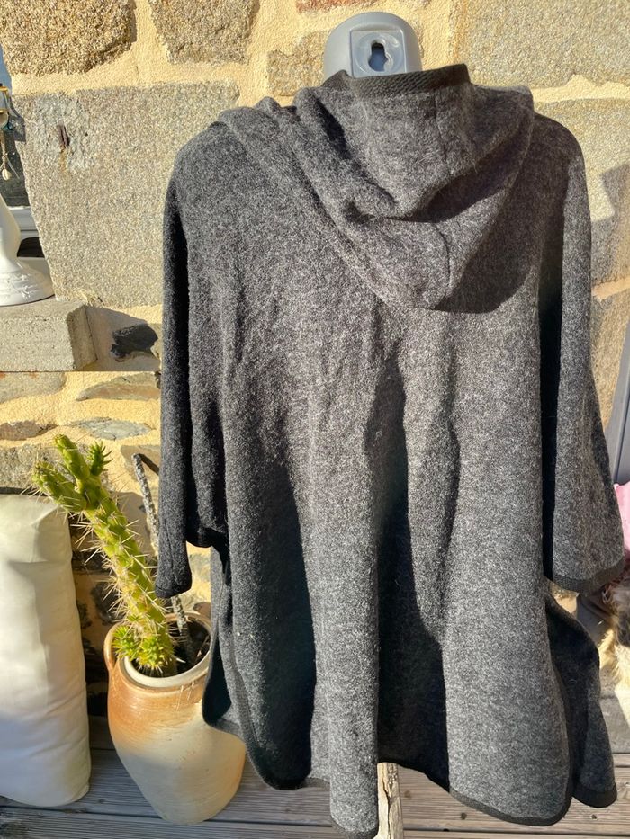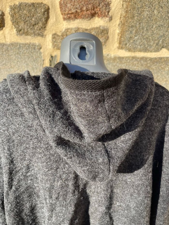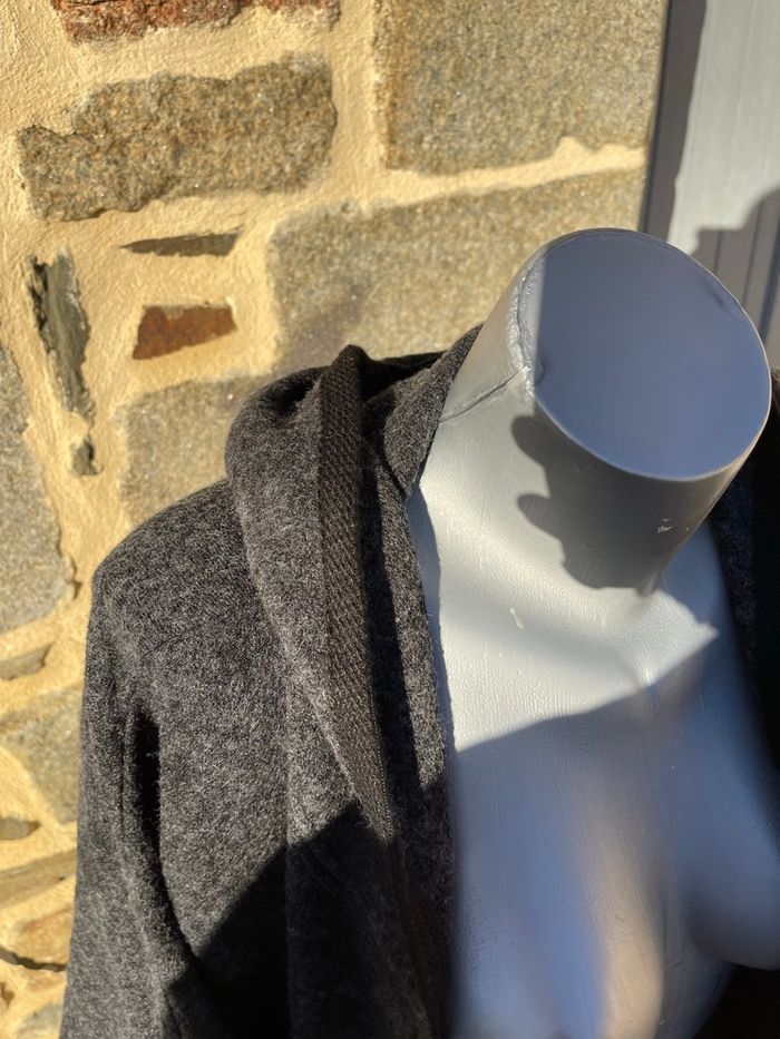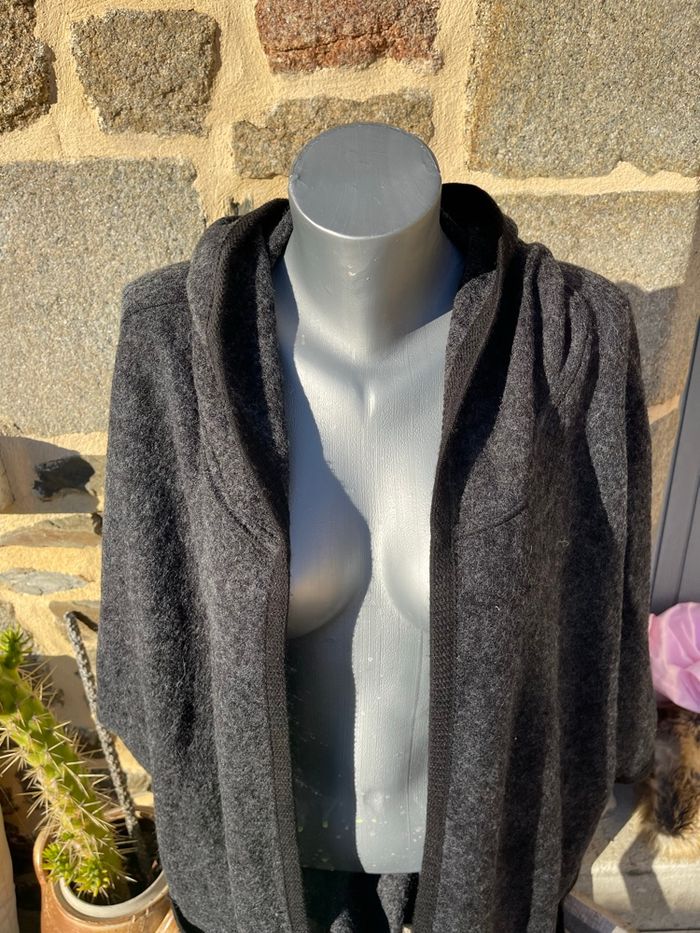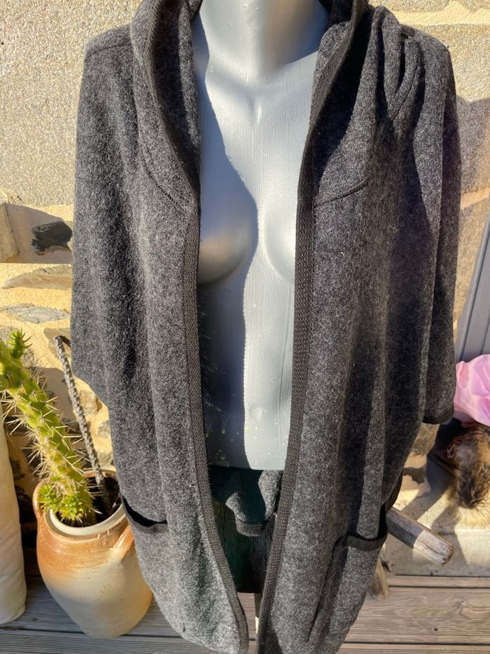 Maxi veste en laine grise à capuche avec liserée noir Taille M Très bonne état Woman Code
