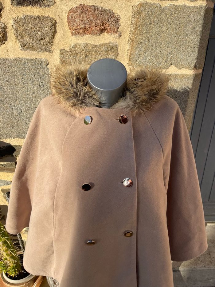 Cape / poncho en laine camel avec capuche fourrure - Boutique indépendante  - photo numéro 7