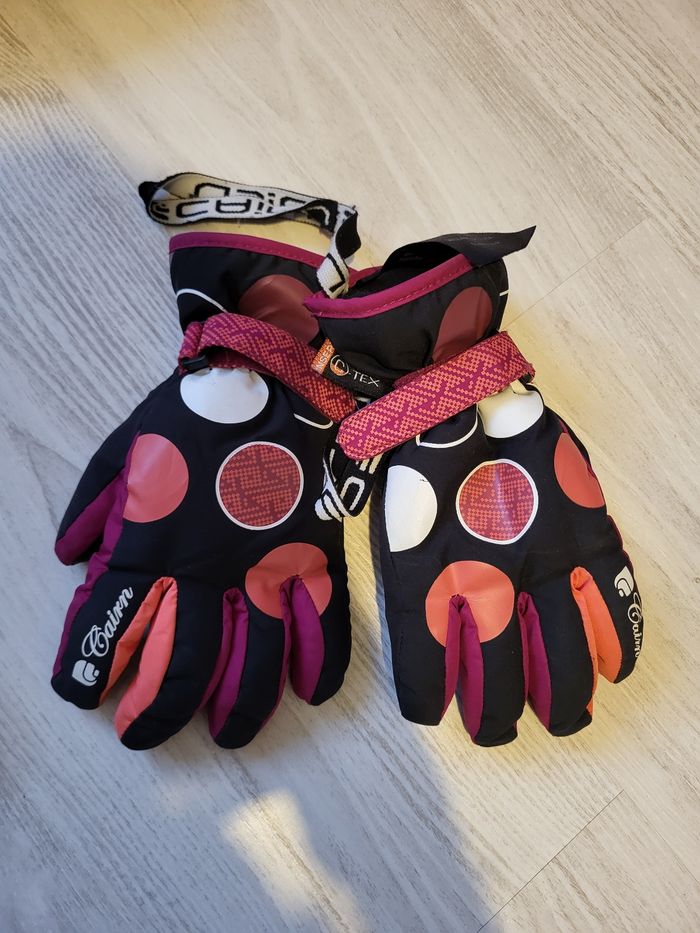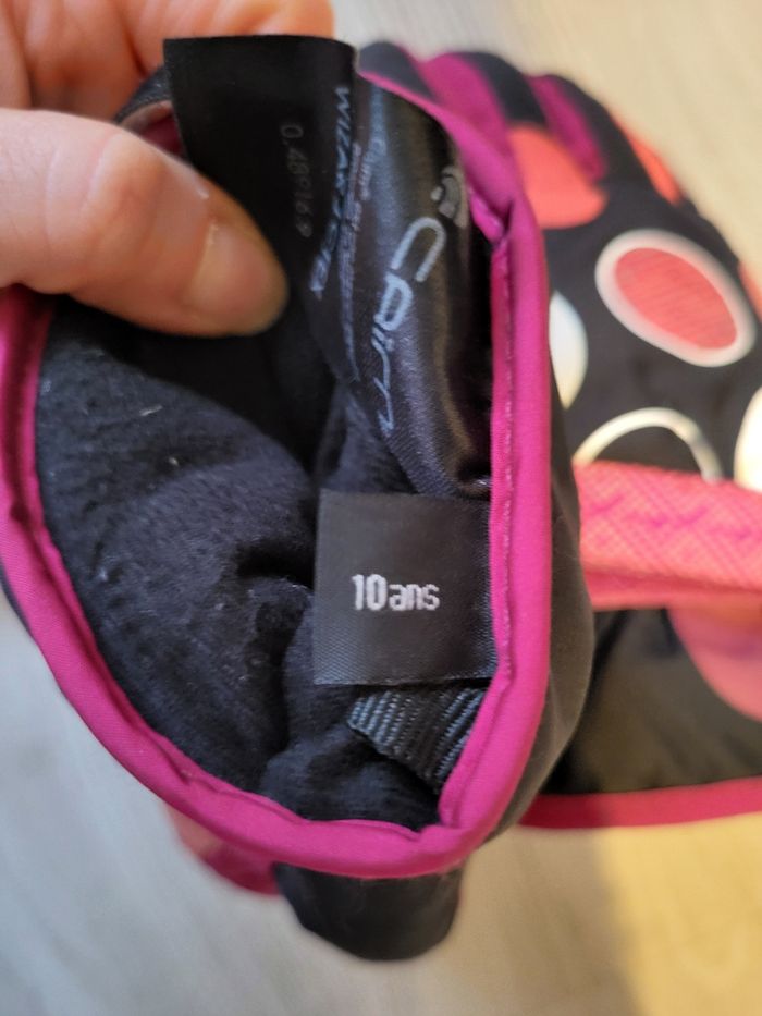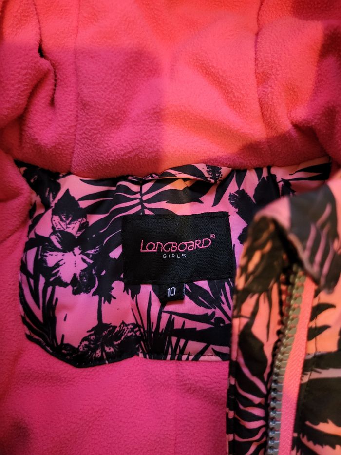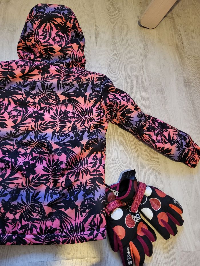 Manteau de ski fille et paire de gants de ski Marque longboard pour le manteau et cairn pour les gants En très bon état Taille 10 ans Prix 30 euros le lot