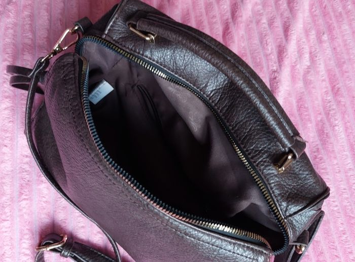 Sac à main 👜 marron simili cuir Avec bandouillère Poche zip extérieur Poches intérieures Poche sur les côtés longueur 27 cm hauteur 20 cm profondeur 14 cm État neuf Maison non fumeur marque Tommasini