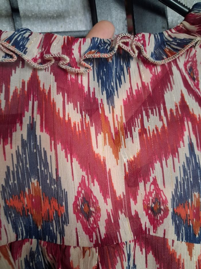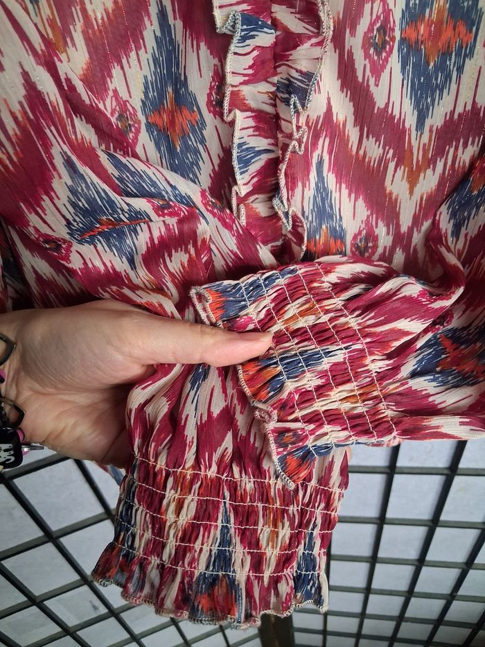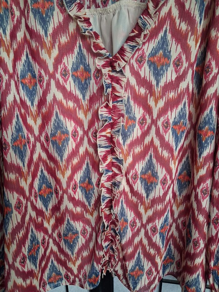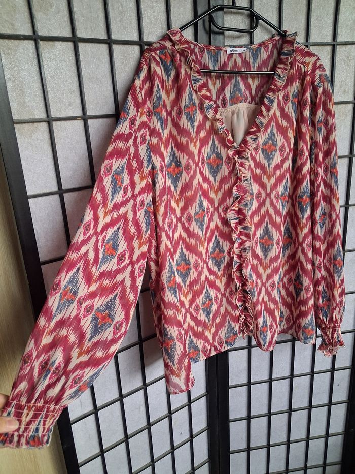 Blouse femme manches longues. Légèrement transparente au niveau du haut du dos (voir photo avec ma main) En très bon état Taille des mensurations en photos Photo du vêtement porté impossible