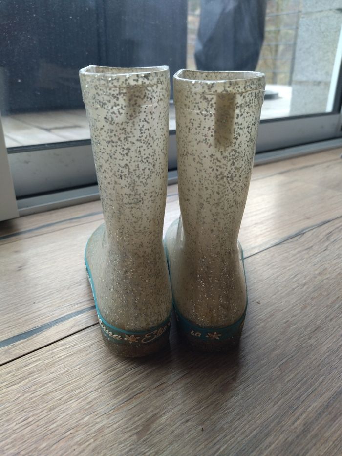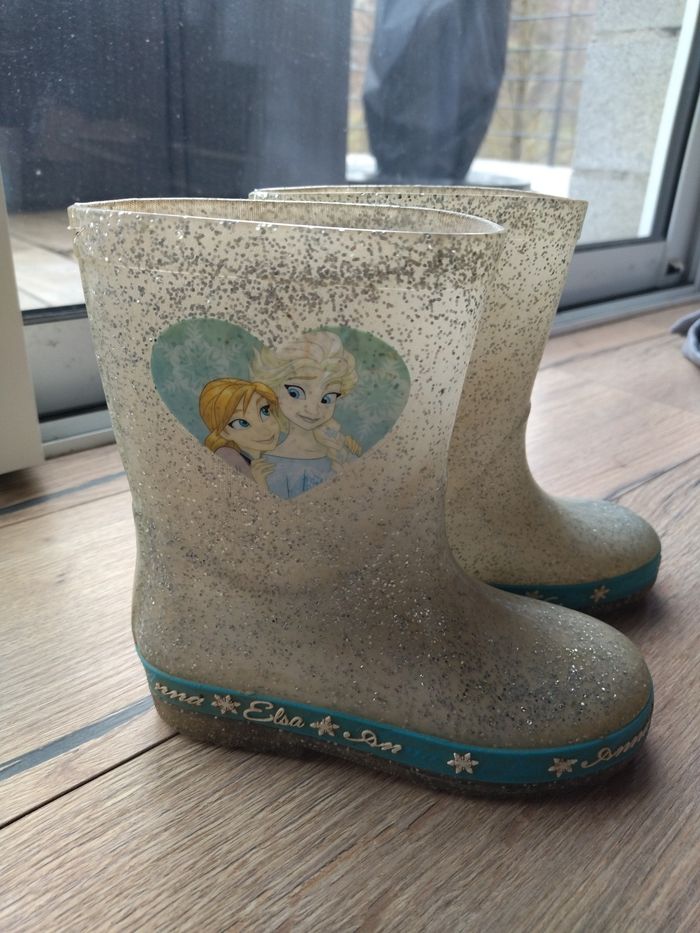 Bottes en caoutchouc reine des neiges transparentes à paillettes de taille 29 en bon état.