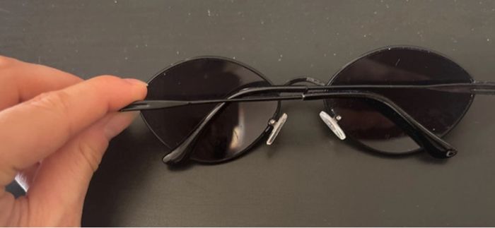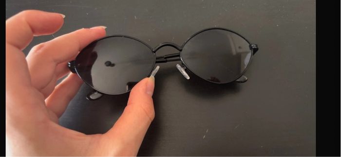 Lunettes de soleil noires effet cat eye Portée quelques fois / en très bon état Sur la première photo on dirait qu’il y a une rayure mais il n’y en a pas ! Prix neuf : 19,99€