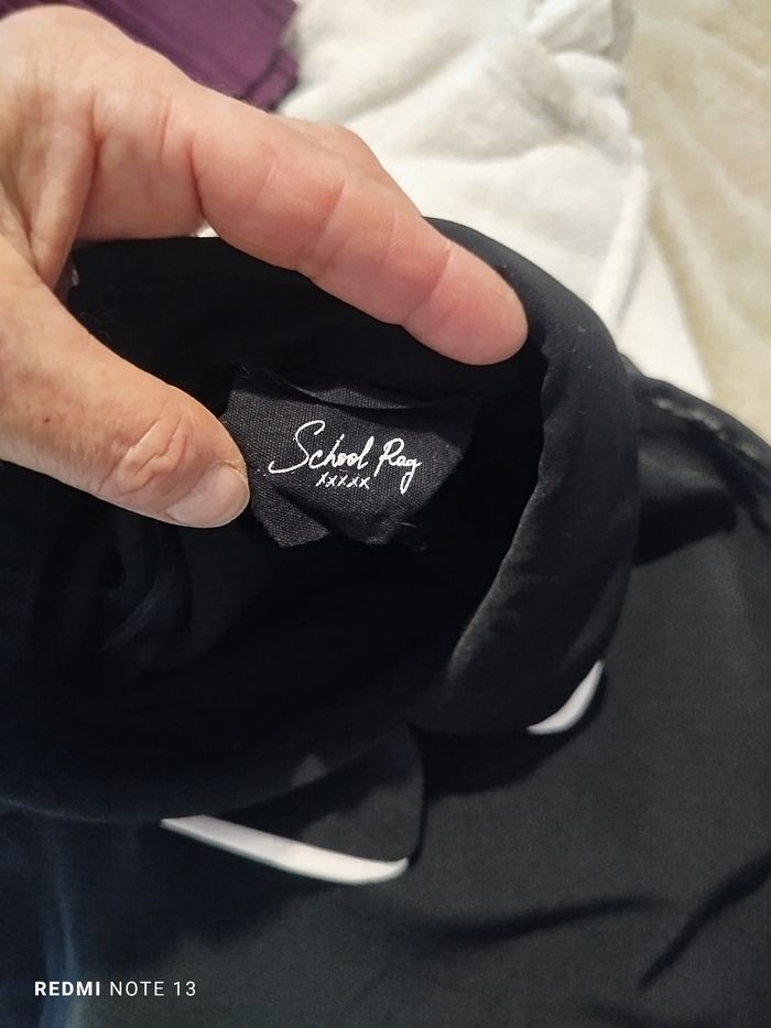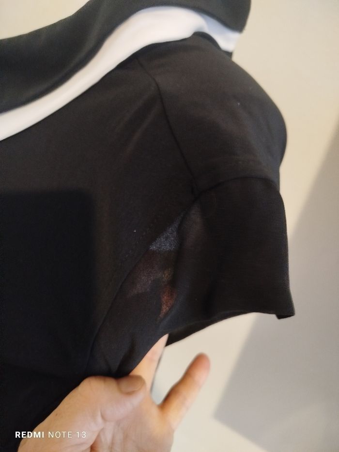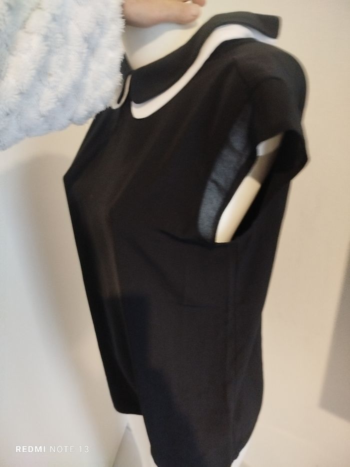 #kytie38femme. Chemise blouse sans manche taille 38 de marque school ray noir et blanc col jacqueline en voile épais super doux 100 % polyester mesure des épaules 40 cm des aisselles 50 cm hauteur 70 cm se ferme par deux accroches dans le cou dans le dos ainsi qu'une fermeture éclair en état neuf ref RC