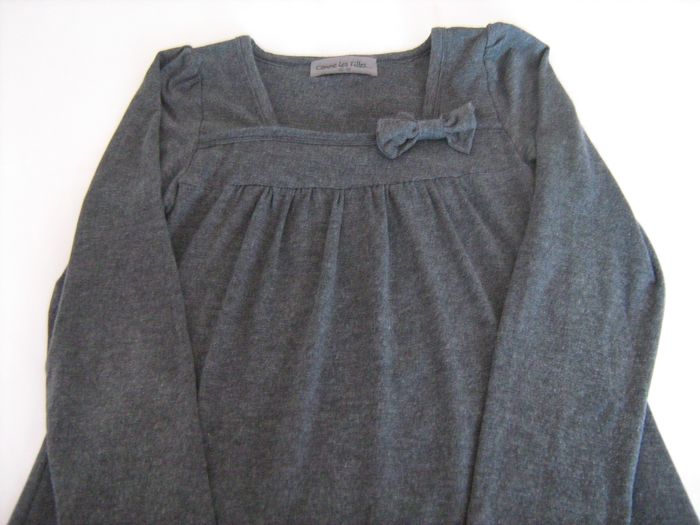 Vends tunique grise Comme Les Filles avec nœud sur l'encolure. Doublée à l'intérieur. 96 % coton et4 % élasthanne. Taille 10/12 ans. Excellent état. N'hésitez pas à consulter mes autres annonces.