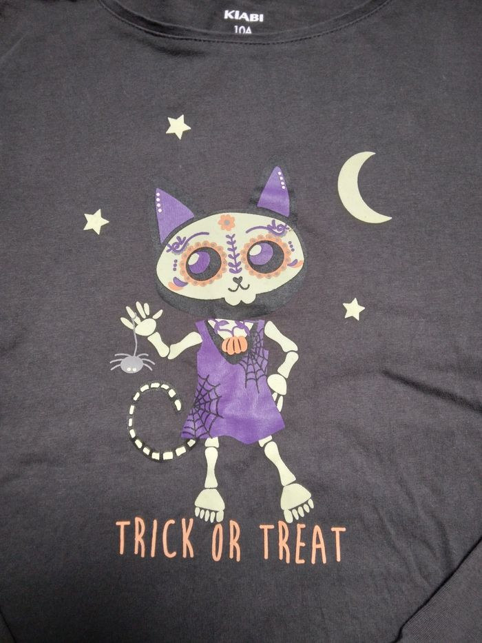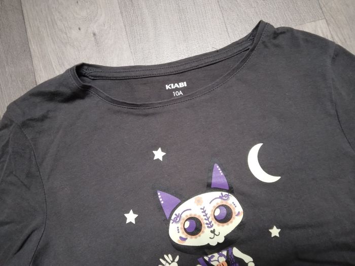 T-shirt fille halloween, dessin fluorescent, 10 ans