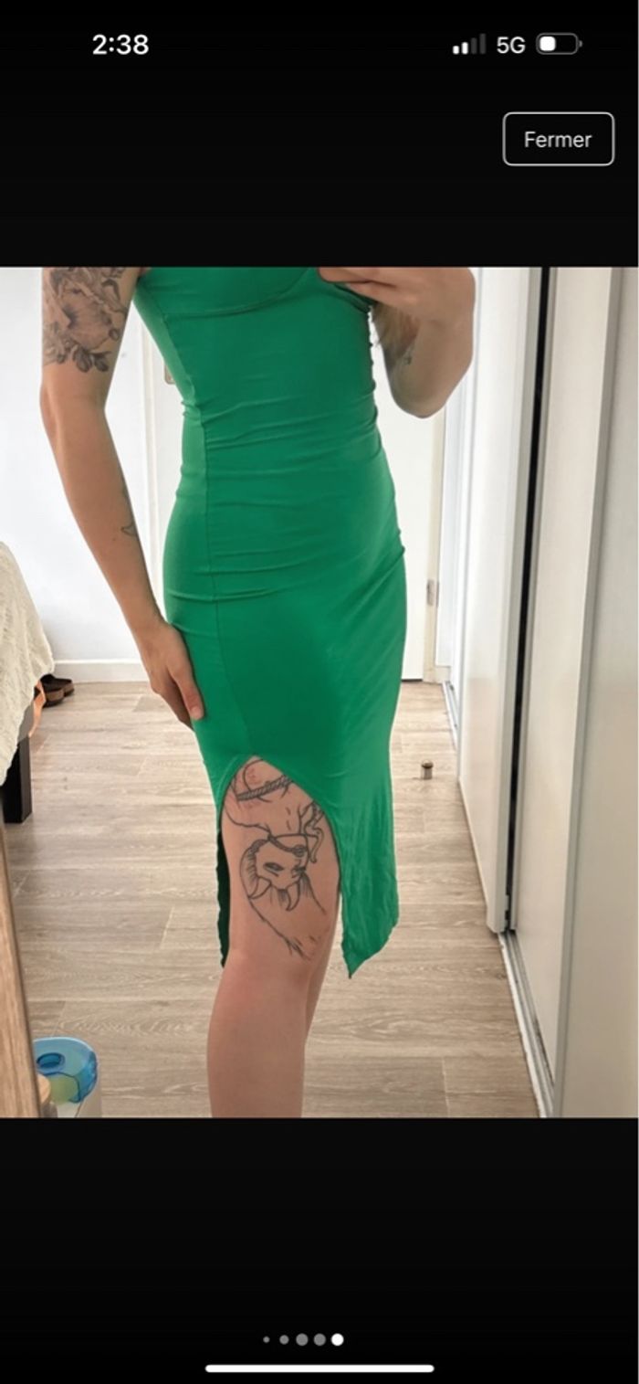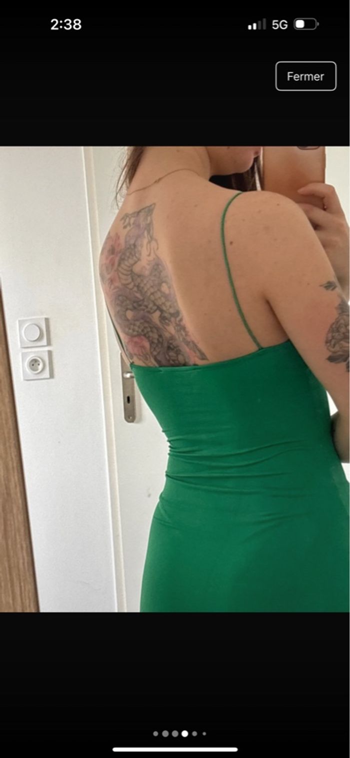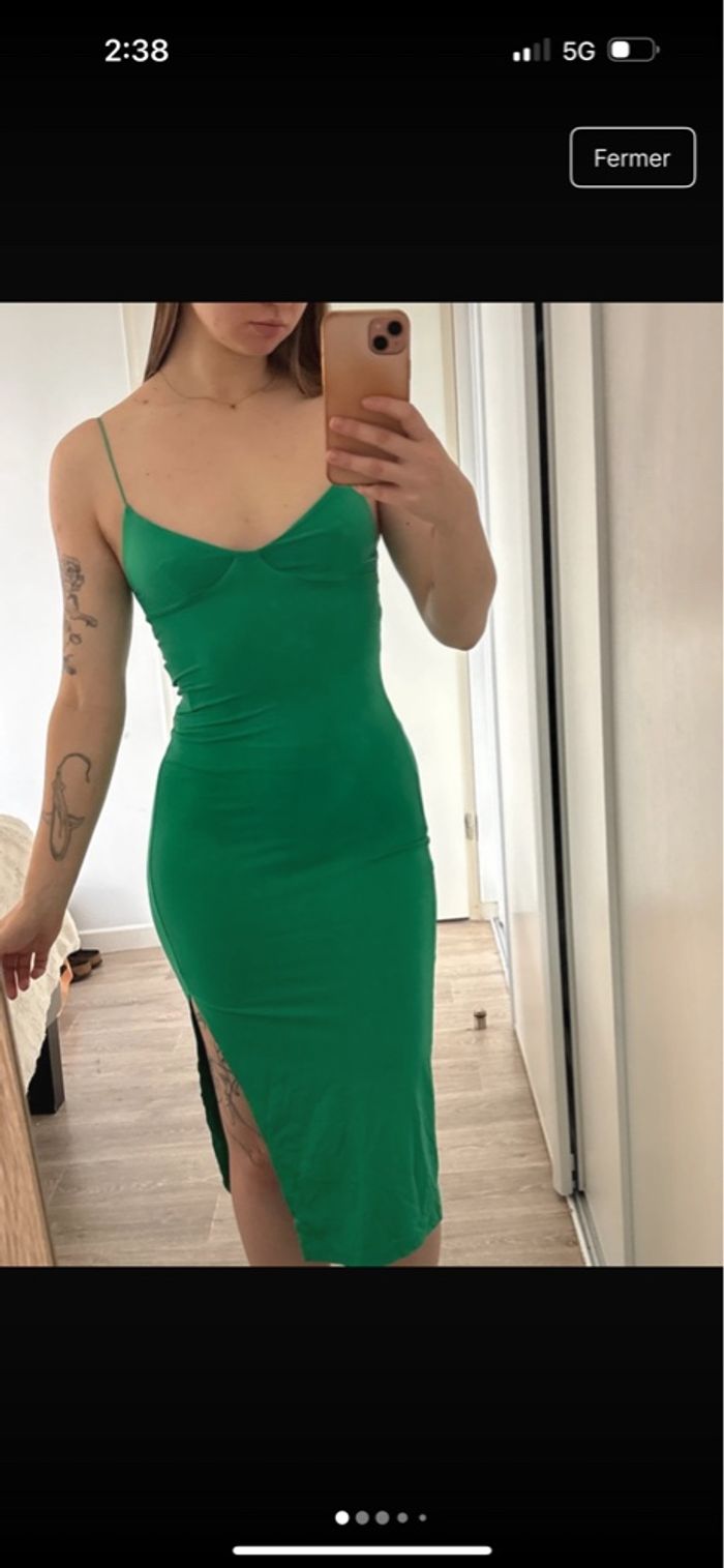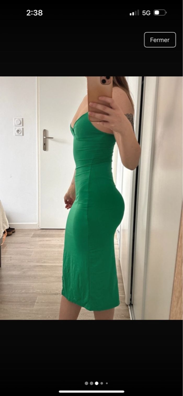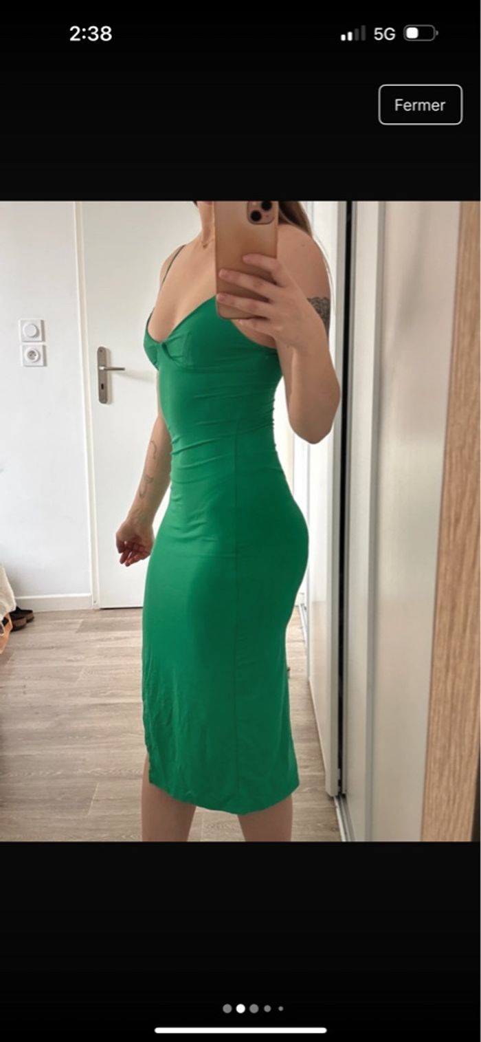 Robe verte longue moulante à bretelle de chez Bershka Robe extensible grâce à sa matière s’adapte à la forme du corps Portée juste pour l’essayage et la photo Prix neuf : 29,99€