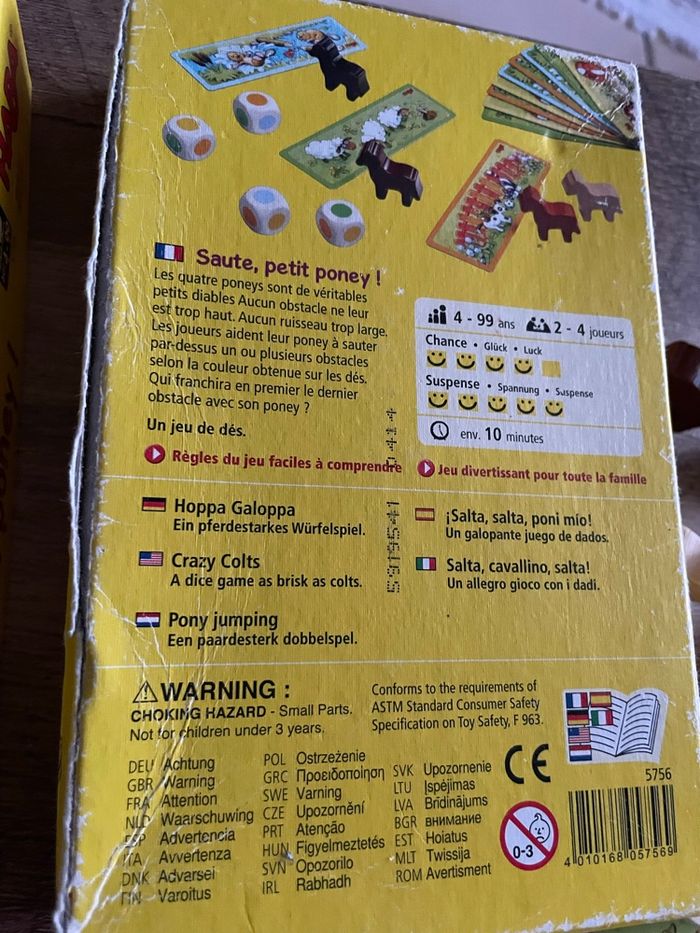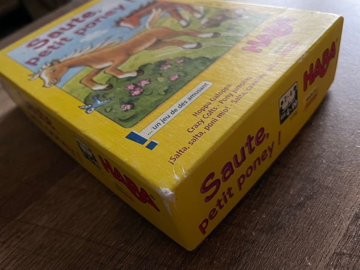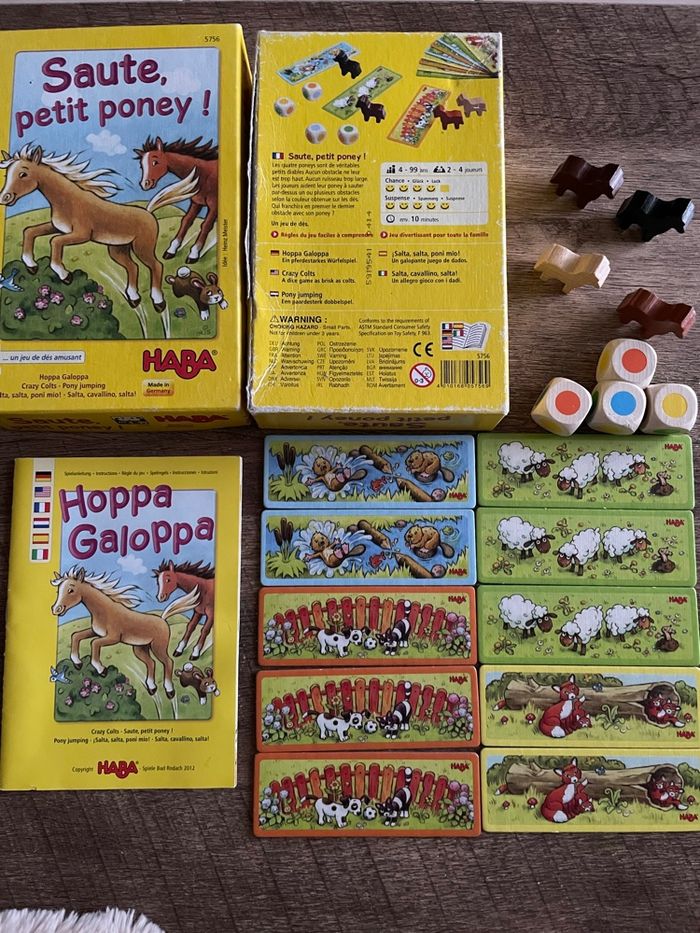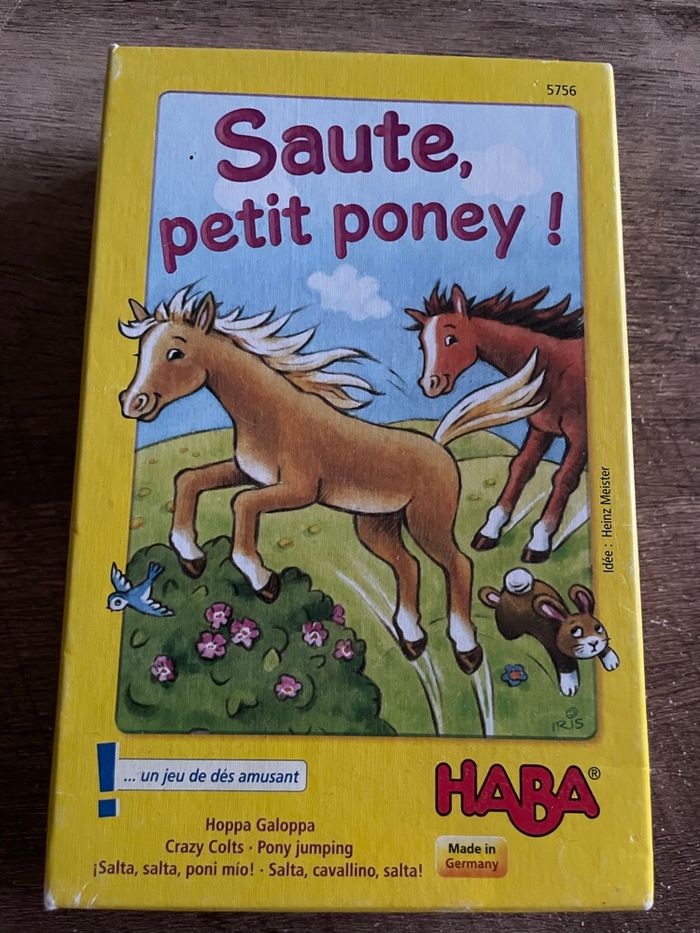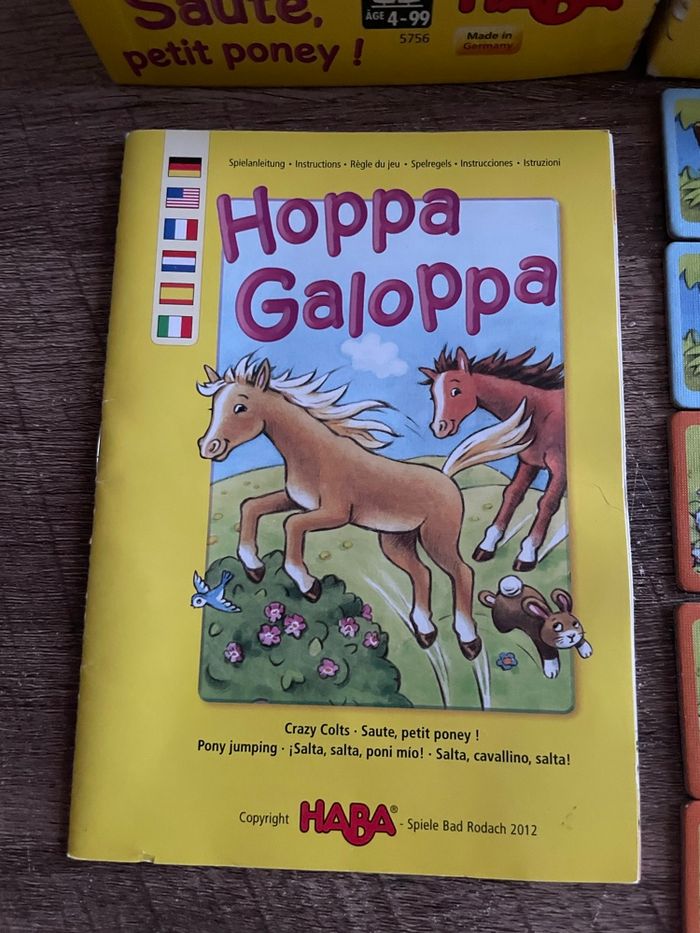 Jeu « Saute, petit poney! » de Haba Incomplet Manque 2 cartes sur 12 Boîte abîmée Voir photos