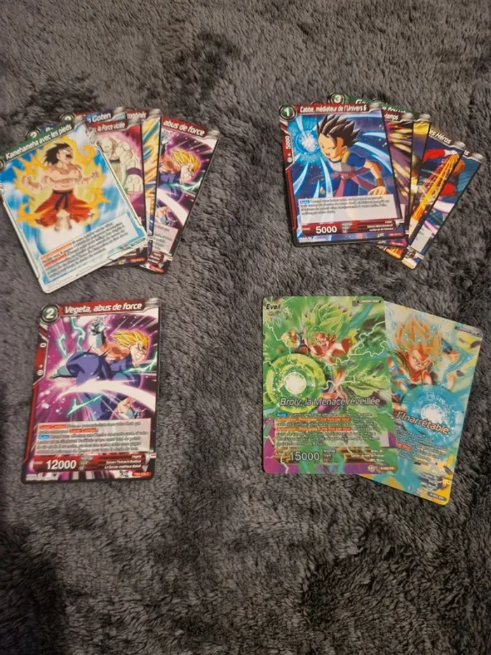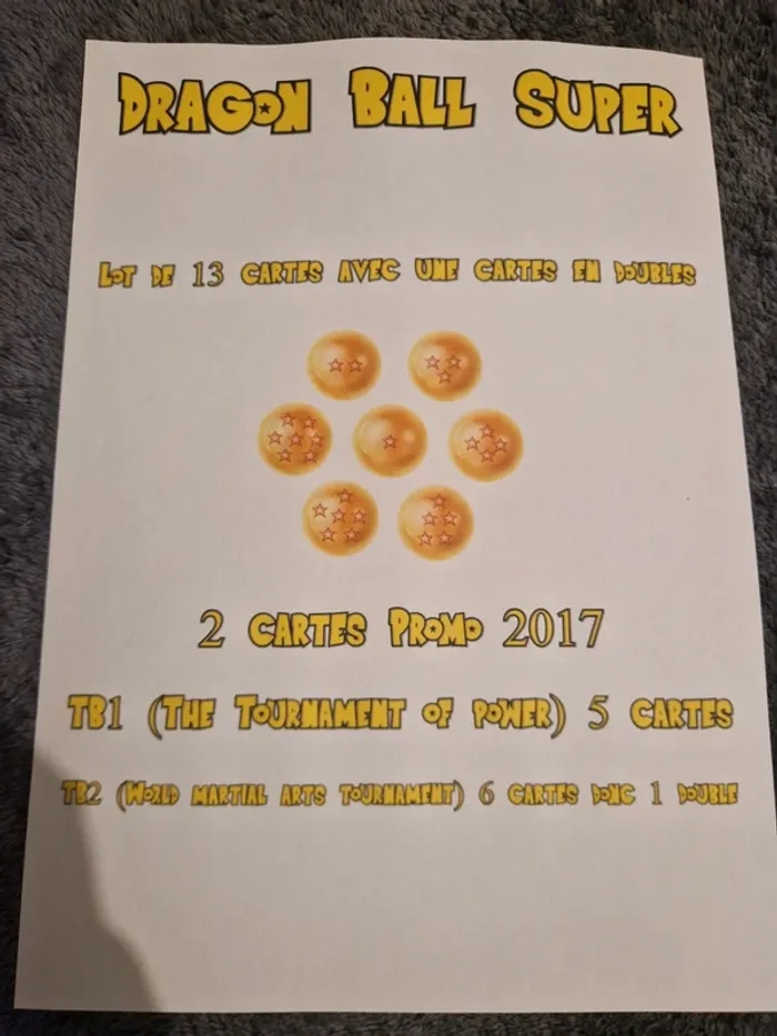 Vend lot de 13 cartes Dragon ball super en très bon état Lot détaillé en photo Envoi rapide et super bien protéger Pour plus de renseignements ou photo je reste à votre disposition
