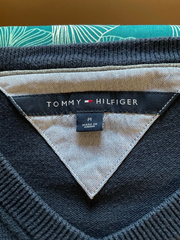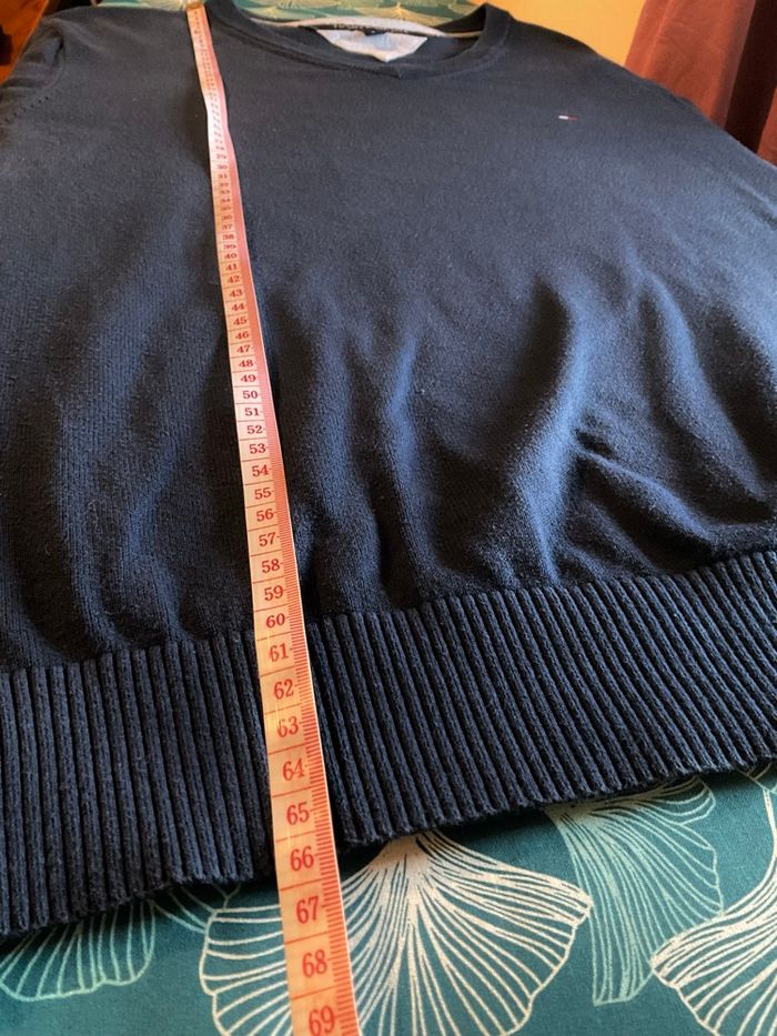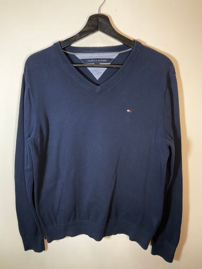 Très bon état Pull col V bleu marine pour homme Tommy Hilfiger Logo brodé 100% coton Voir dimensions en photo Envoi rapide et soigné