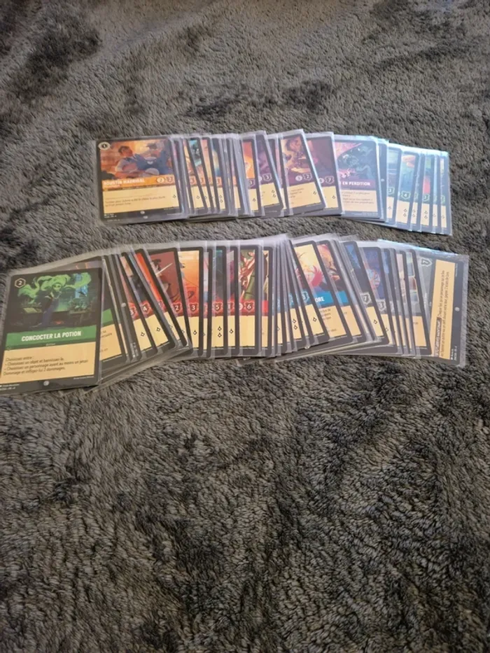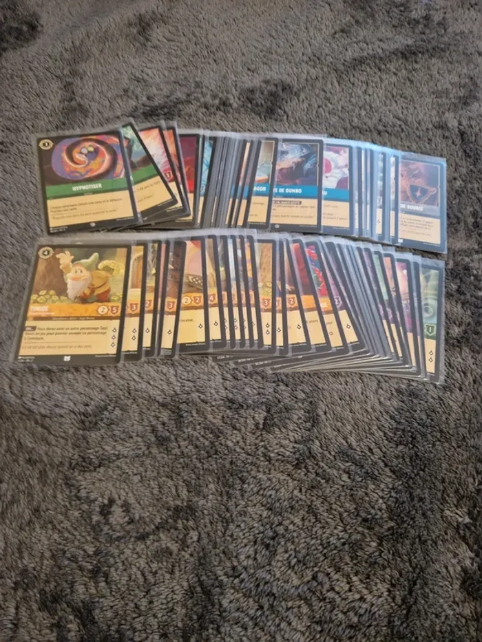 Vend lot de 124 cartes lorcana du chapitre 2 et chapitre 4 Lot détaillé en photo Toutes les cartes sont protéger pars une sleeves et sa depuis leur sortie de booster Envoi rapide et super bien protéger Pour plus de renseignements ou photo je reste à votre disposition
