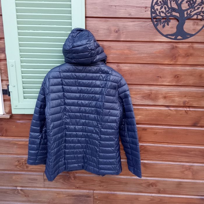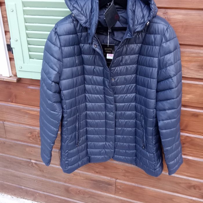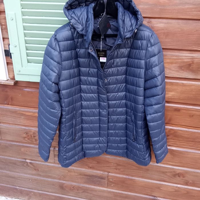 Veste doudoune neuf très beau bleu marine très pratique pour voyager, manche , randonnée ,etc.... chaude très indispensable toute saison hiver , automne, printemps capuche lavable machine .