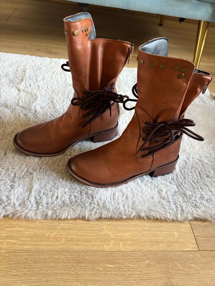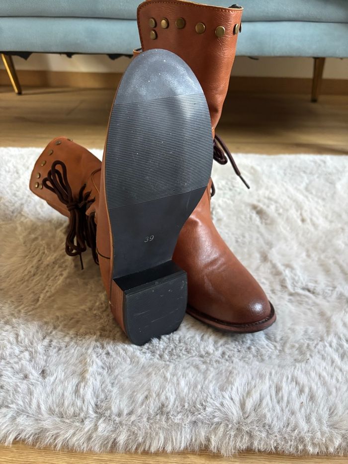 Bottines marrons clair, très jolies, juste essayé, taille 39 mais serré, conviendrait plus pour un 38