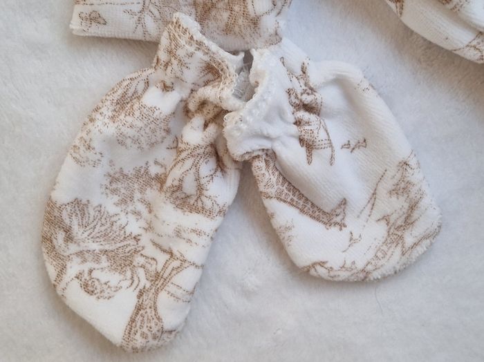 Ensemble safari bébé beige 0/3 mois pyjama bonnet et moufle - photo numéro 3