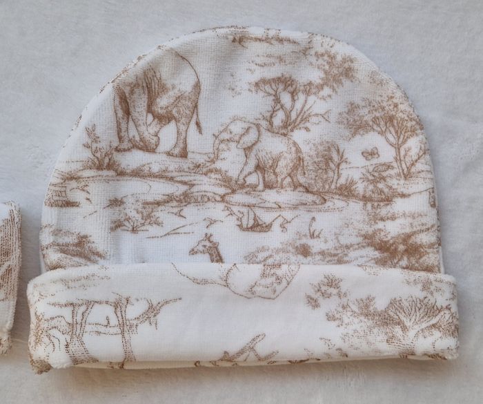 Ensemble safari bébé beige 0/3 mois pyjama bonnet et moufle - photo numéro 2