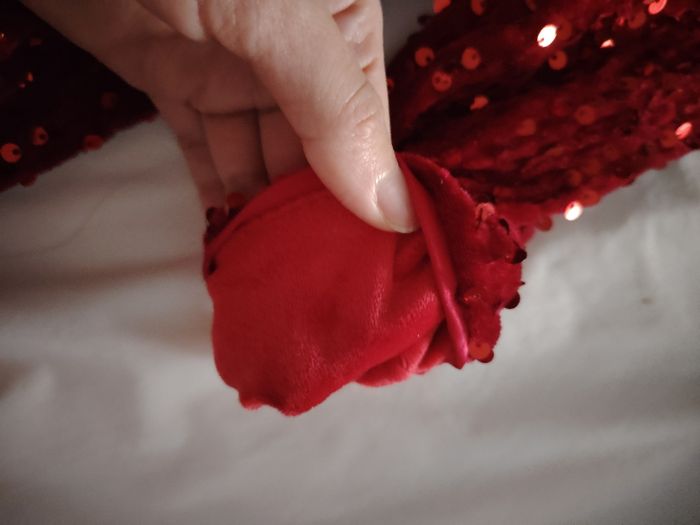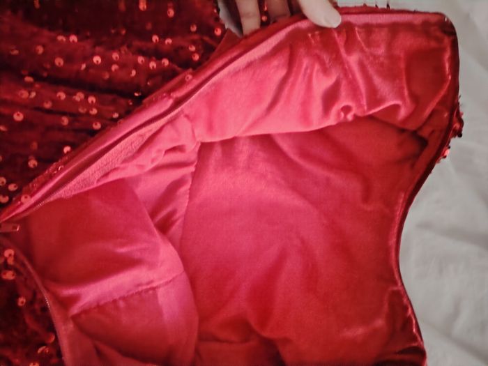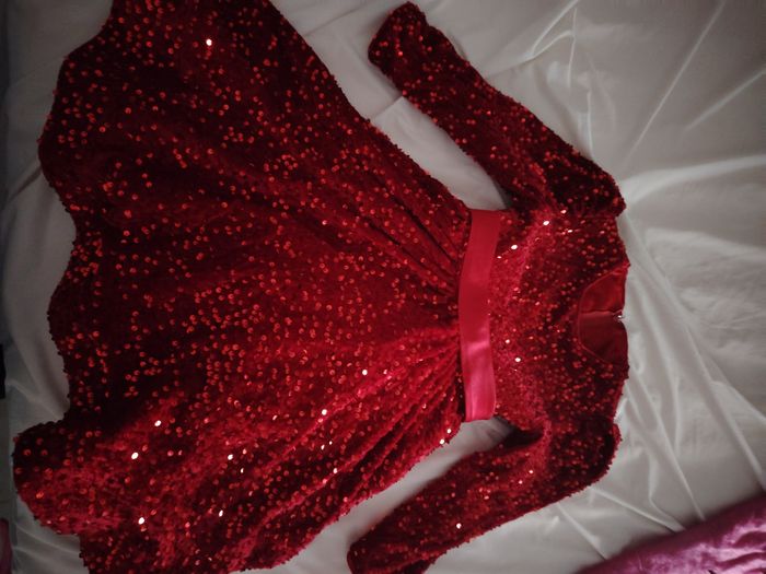 Robe paillettes rouge, en velours intérieurs et extérieurs adaptée aux fêtes de fin d'années ! C'est une robe très bouffante avec un effet wow ! Elle a été mise qu'une seule fois puis lavée à la main. Le nœuds se mets au dos, et s'enlève et se remets à volonté. Elle taille pour un petit 7 ans. Prix négociable