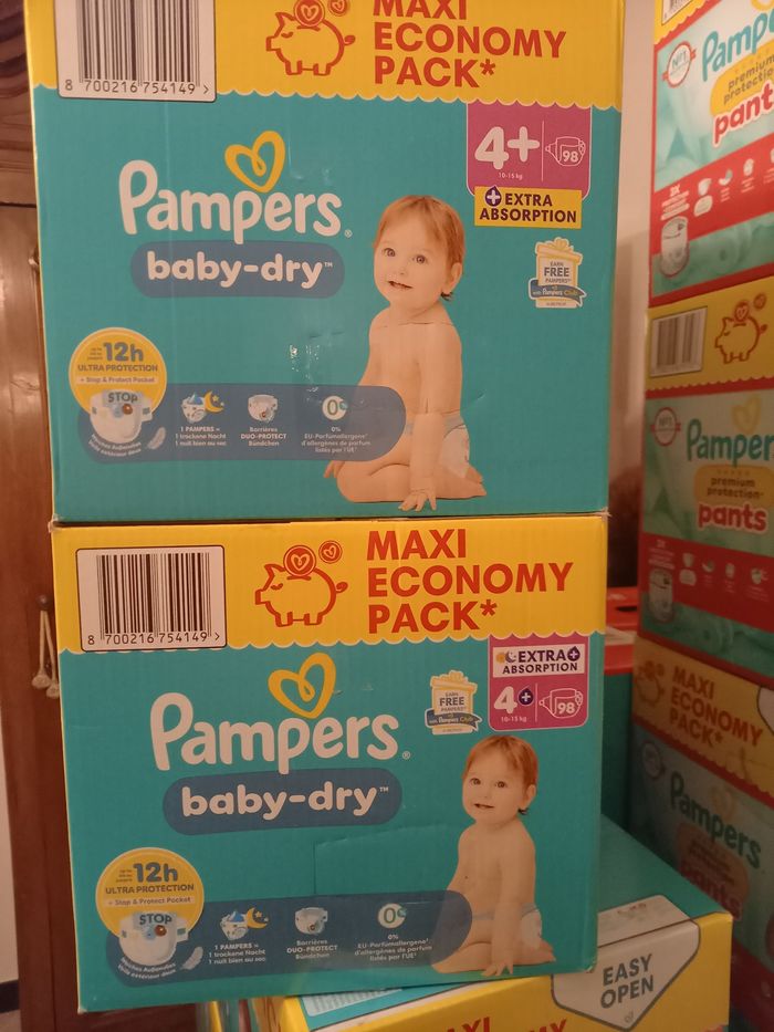 Lot de 2 maxi packs 98 couches taille 4+ soit 196 couches pour 38e. Achat possible 1 seul maxi pack pour 19e 34,90e un seul maxi pack en magasin