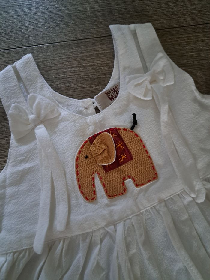Lot de 2 robes 3 ans 1 rose avec fleurs blanches 1 blanche avec motif éléphant jamais portée juste lavée Excellent etat